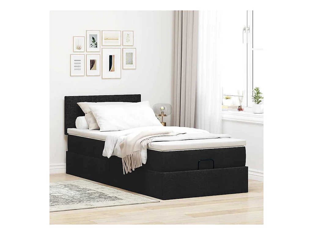 Ottoman bed met matras en LED's 100x200cm stof zwart