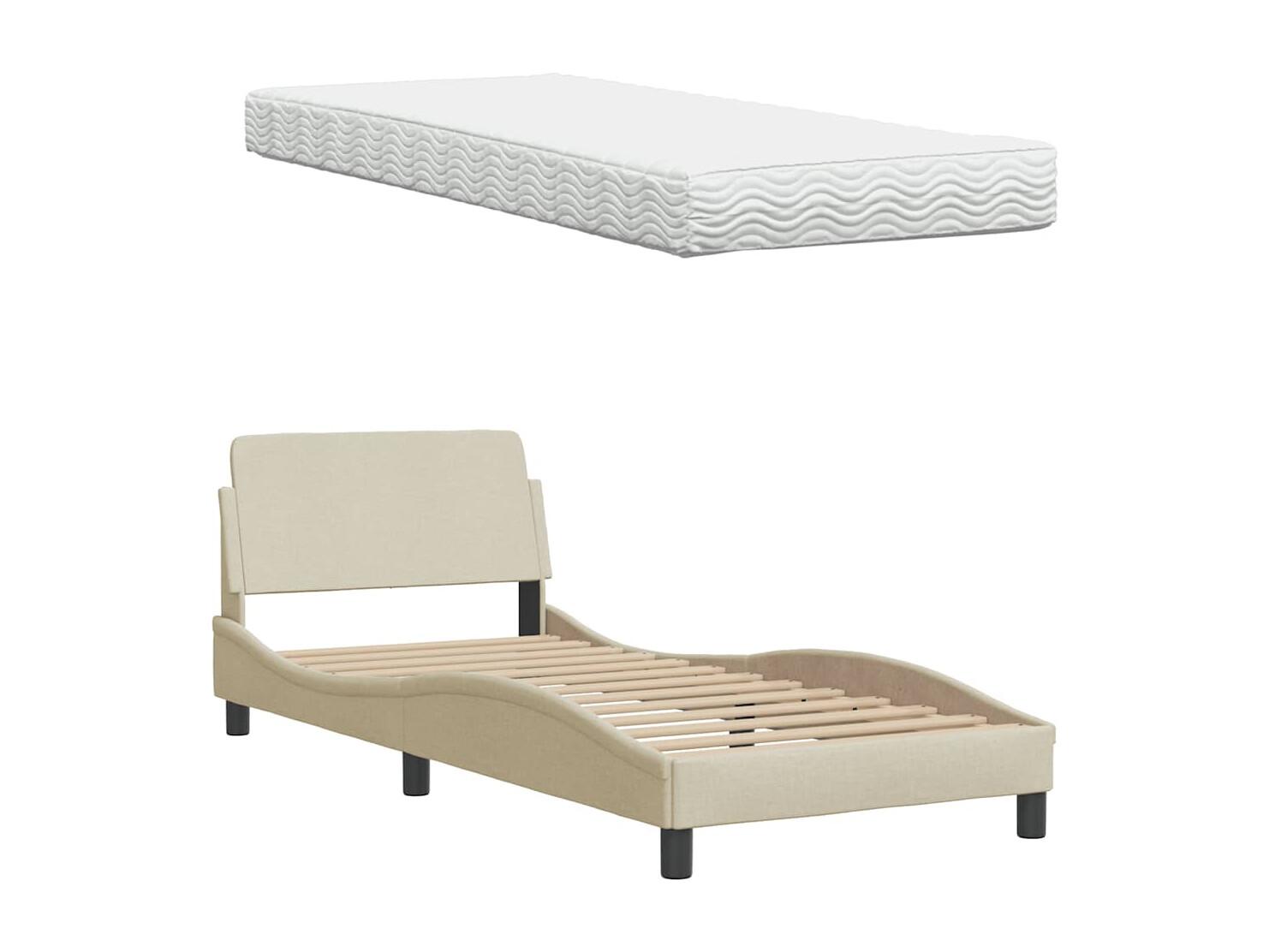 Bed met matras "Hanko" stof crèmekleurig 80x200 cm