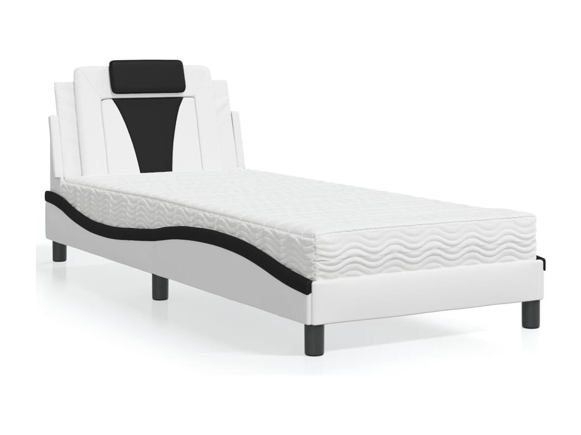 Bed met matras kunstleer zwart en wit 80x200 cm BE262677