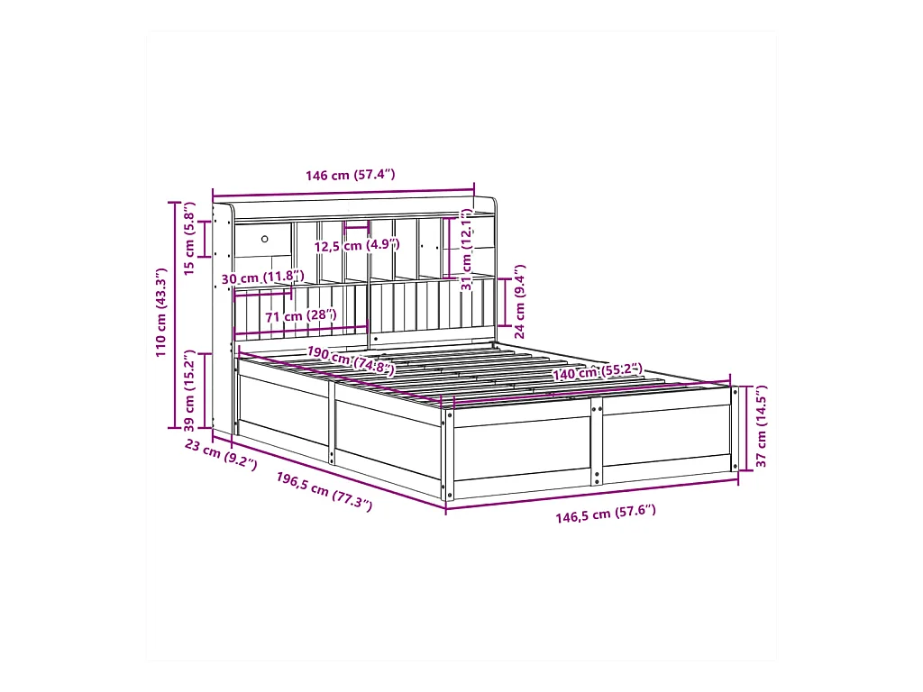Bedframe zonder matras massief grenenhout 140x190 cm