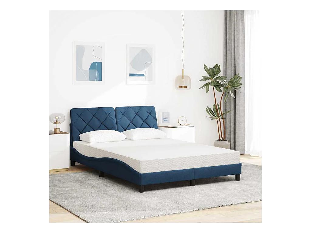 Bed met matras stof blauw 120x200 cm