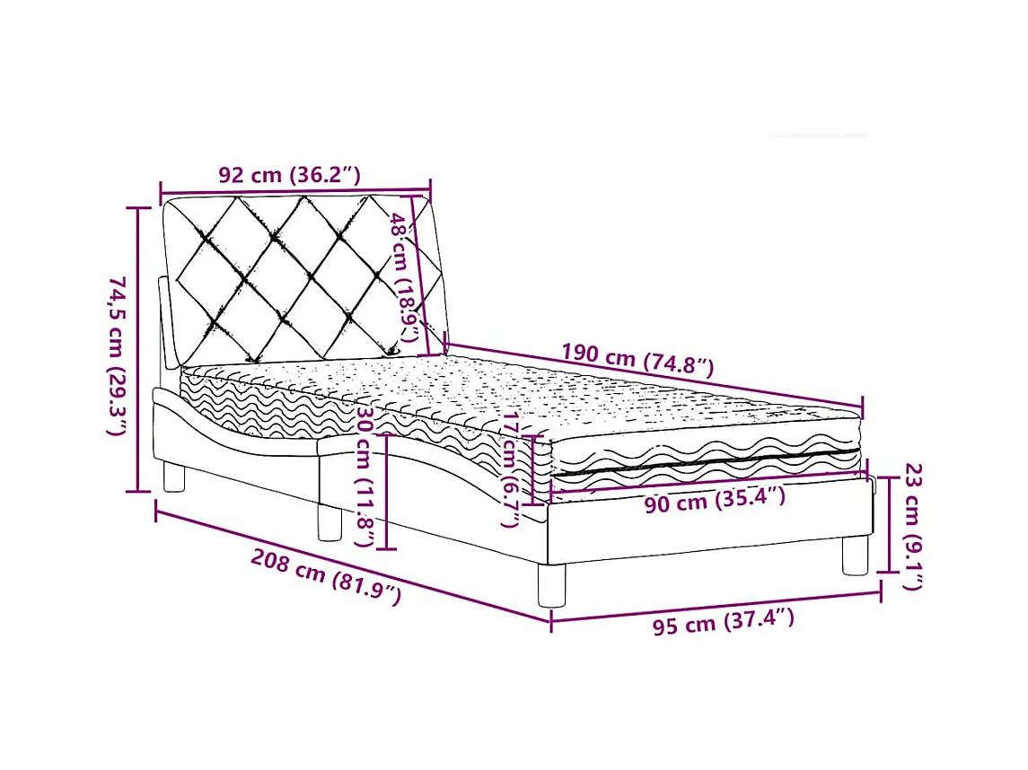 Bedframe stof crèmekleurig 90x190 cm NL64072