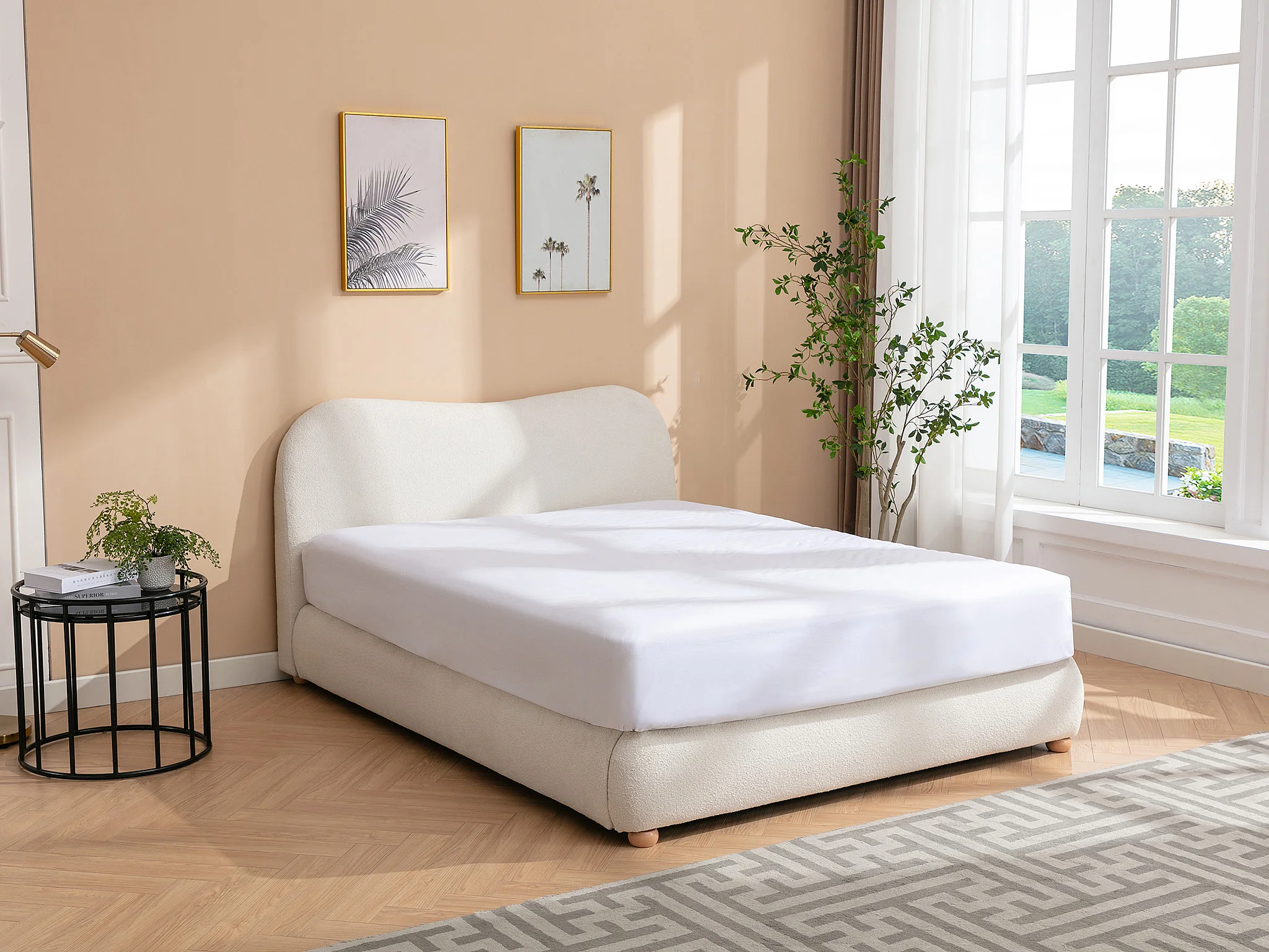 Bed met opbergruimte 140 x 190 cm - Boucléstof - Wit + matras - VANARI