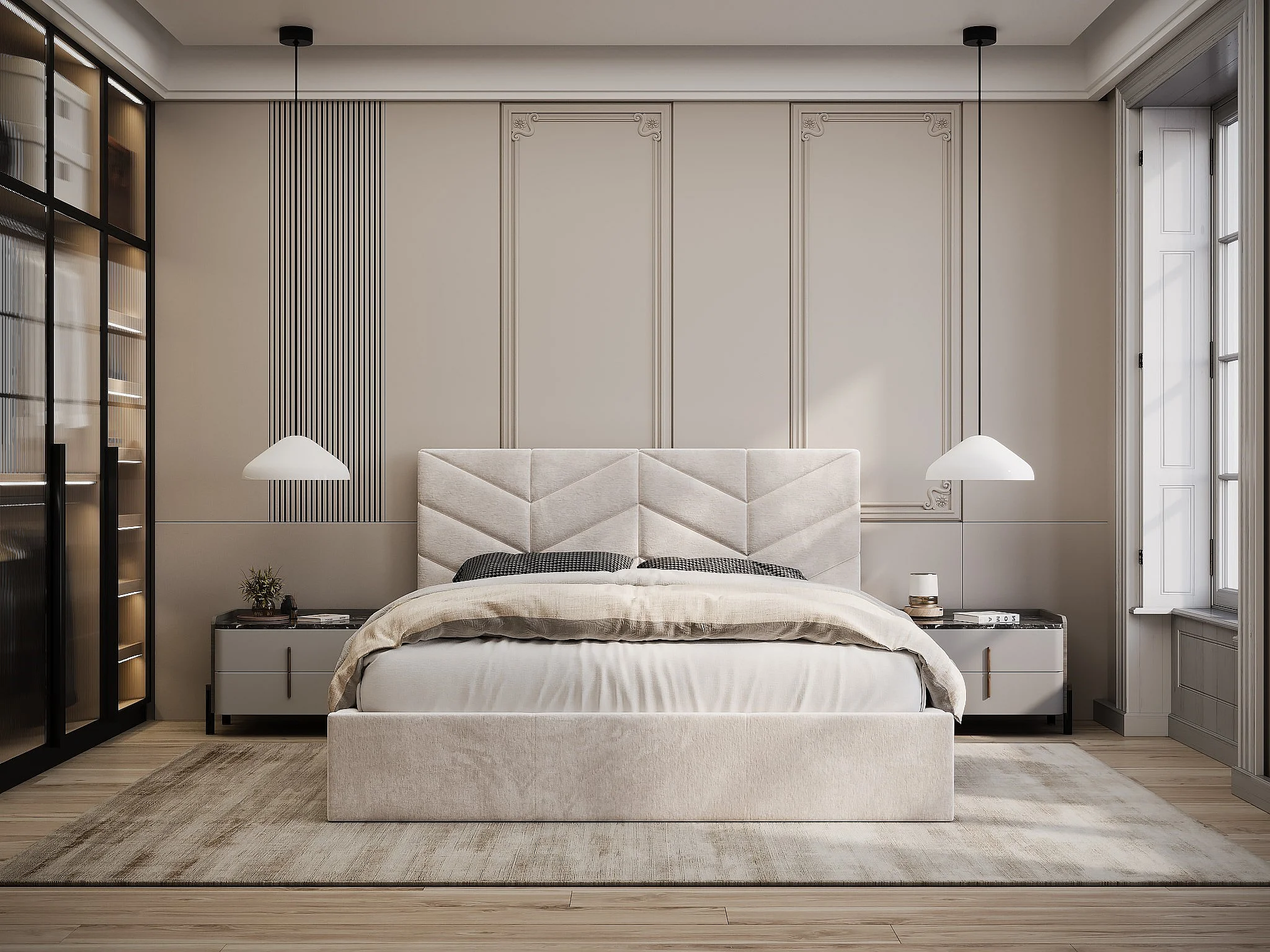 Bed met opbergruimte 140 x 190 cm - Stof met textuur - Crèmewit + matras - JUSTANI