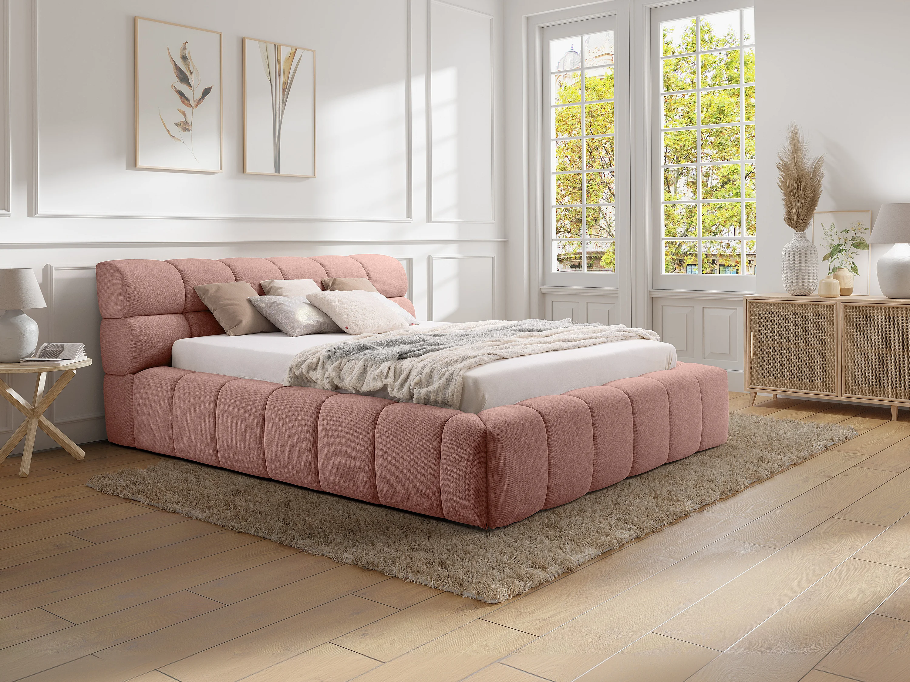 Bed met opbergruimte 180 x 200 cm - Stof - Roze - FORVIK van Pascal Morabito