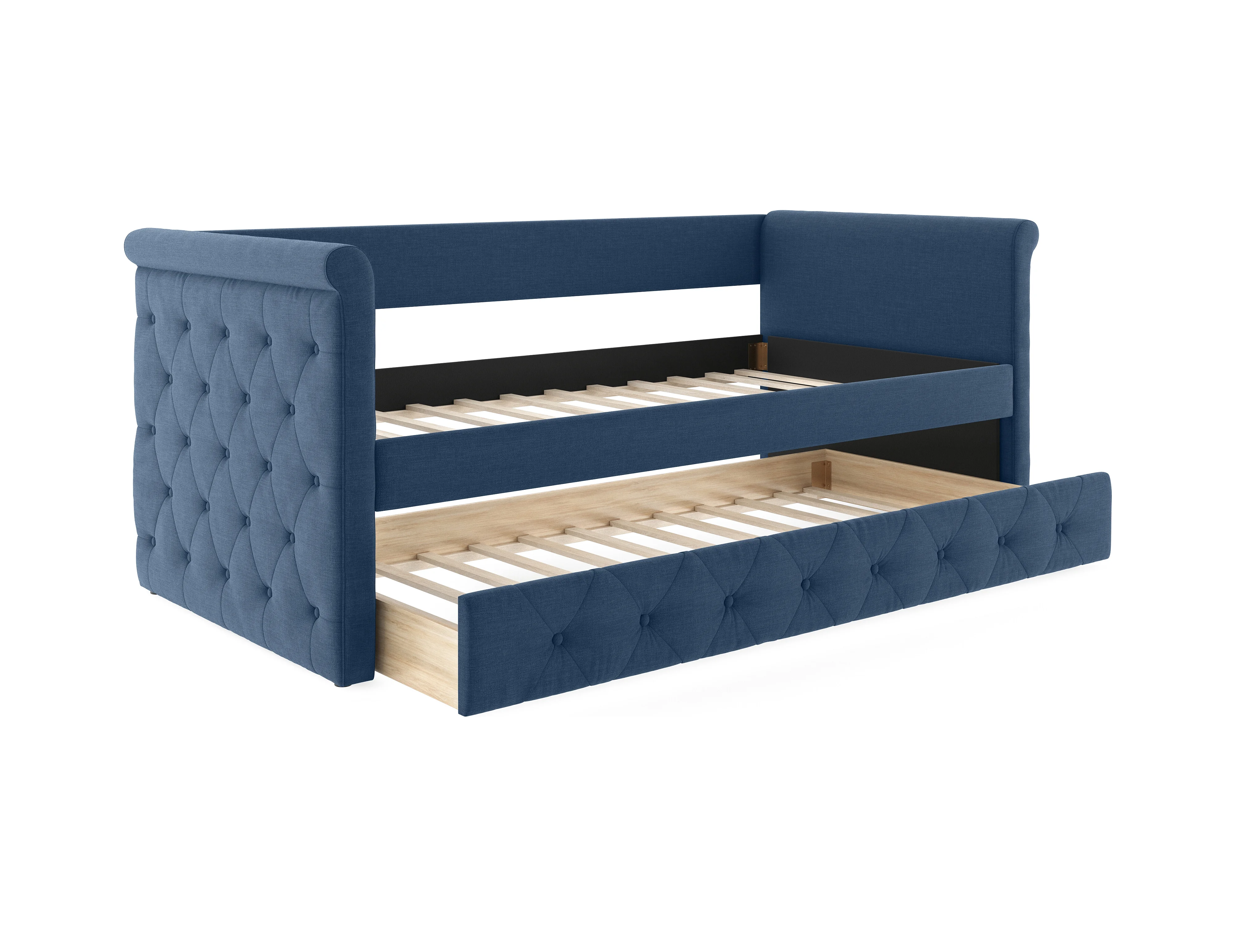 Bed met slaaplade LOUISE - 2 x 90 x 190 cm - Blauwe stof + matras