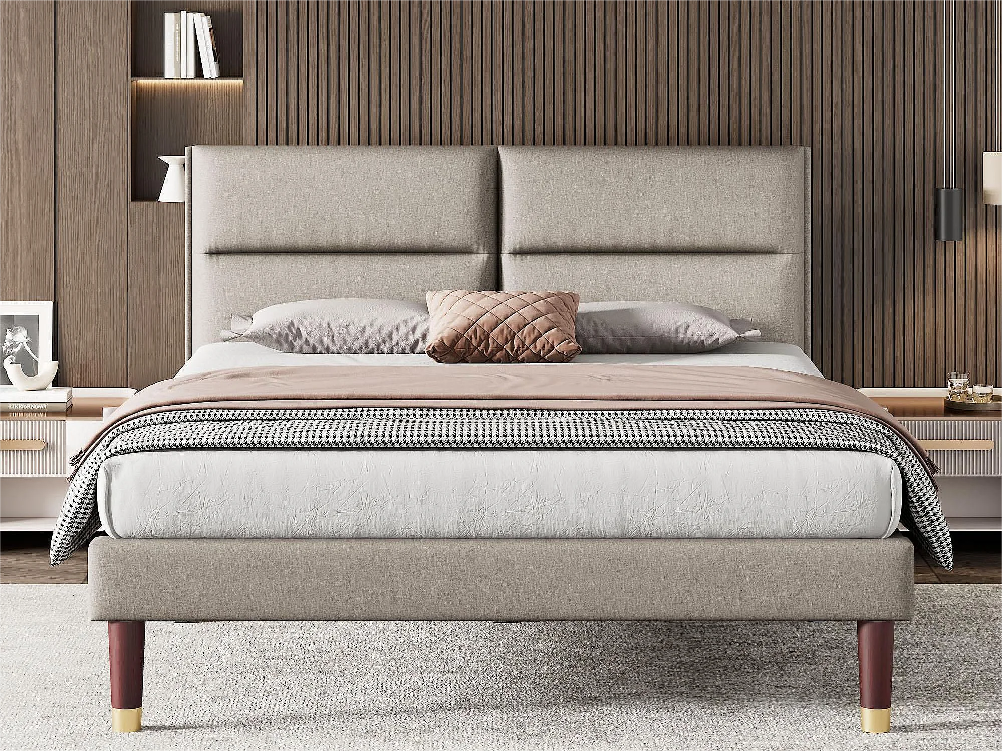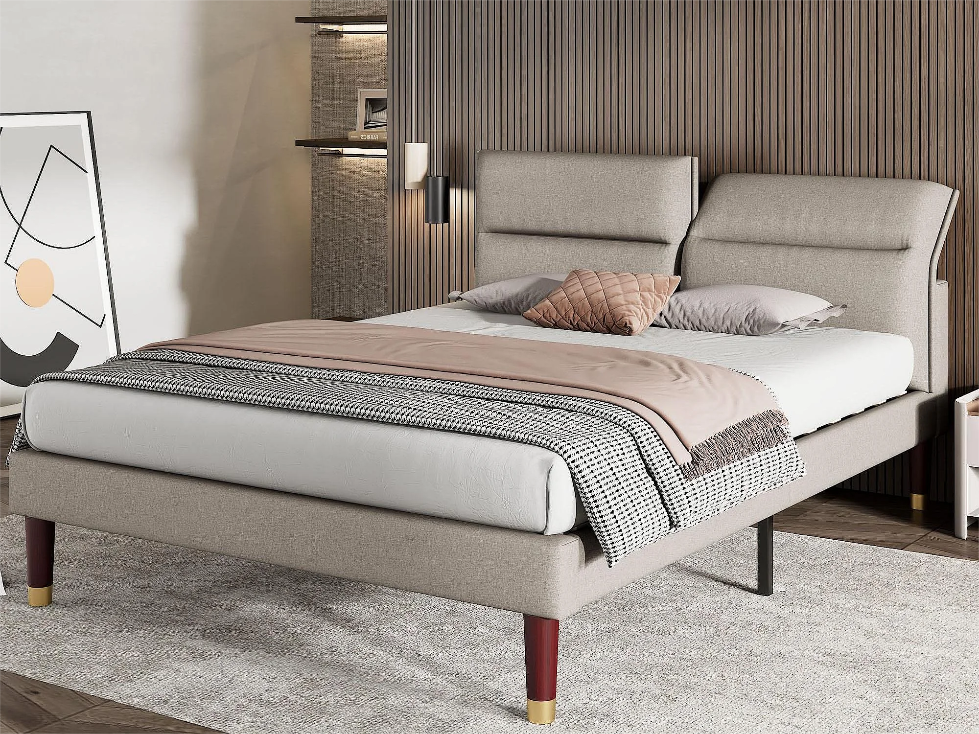 Bed met verstelbaar hoofdeinde - 160 x 200 cm - stof - kleur grijs + lattenbodem