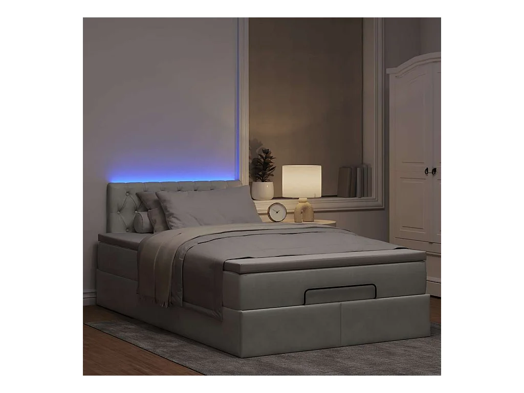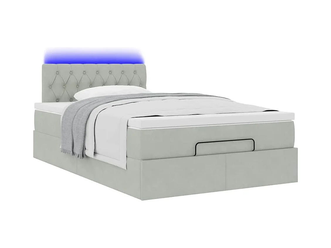 Bed poef met matras en LED's 120x190 cm fluweel lichtgrijs