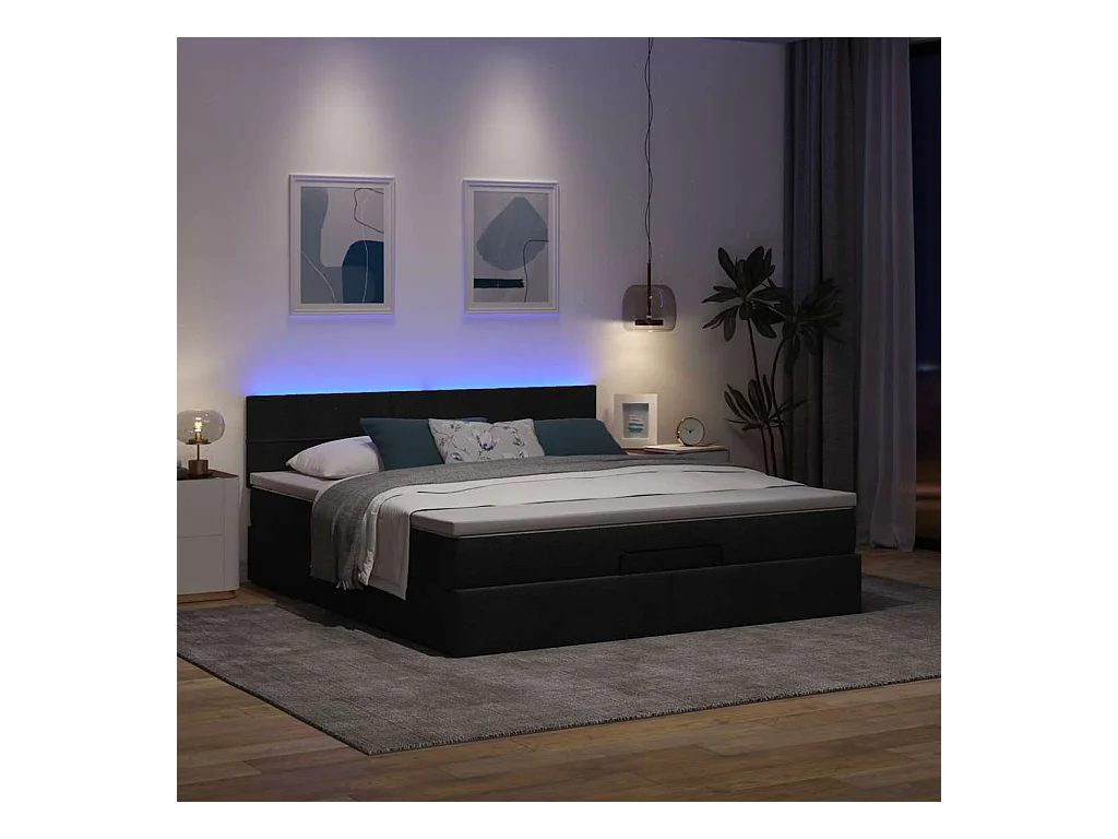 Ottoman bed met matrassen en LED's 180x200cm stof zwart