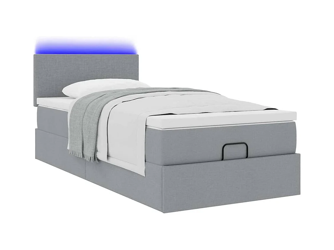 Bed poef met matras en LED's stof 80x200 cm lichtgrijs