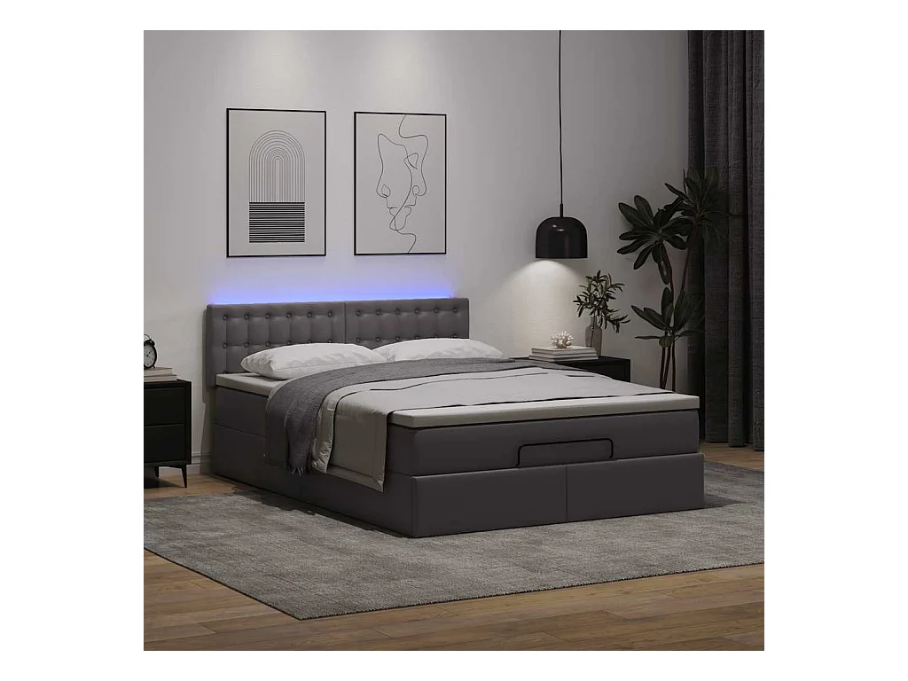 Bed poef met matrassen en LED's 140x200cm kunstleer grijs