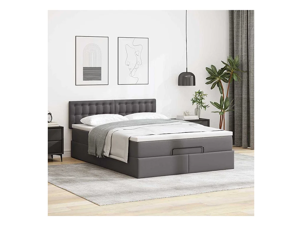 Ottoman bed met matras 140x200cm kunstleer grijs