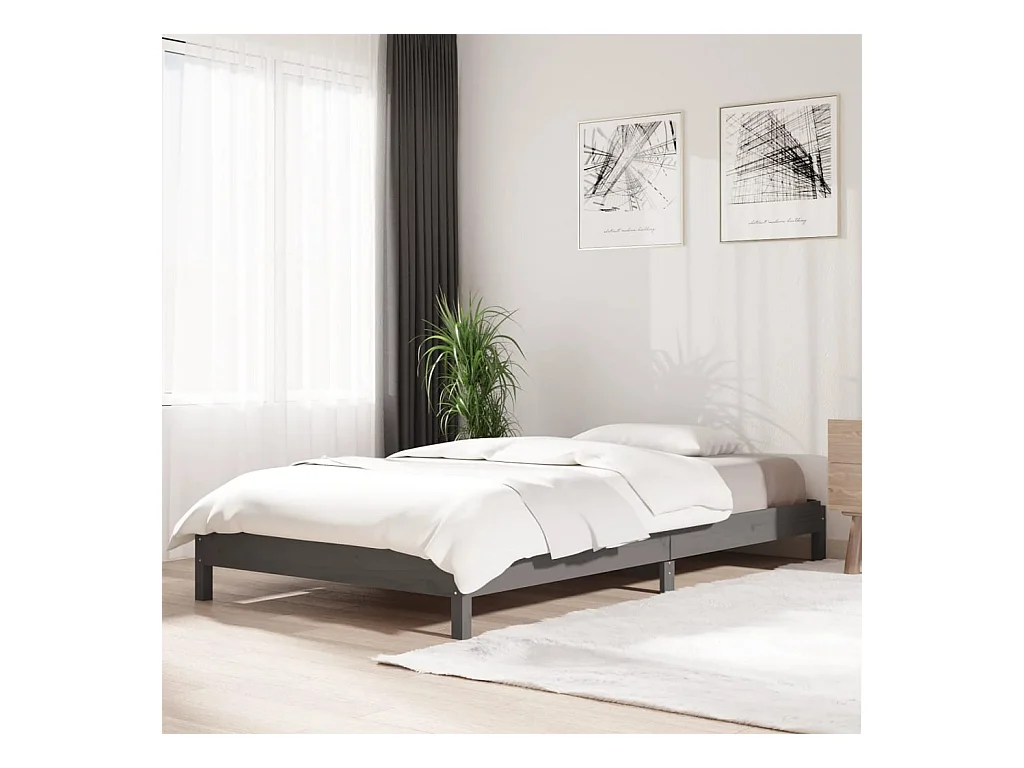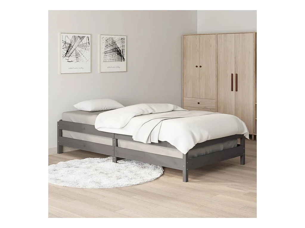 Bed stapelbaar 75x190 cm massief grenenhout grijs
