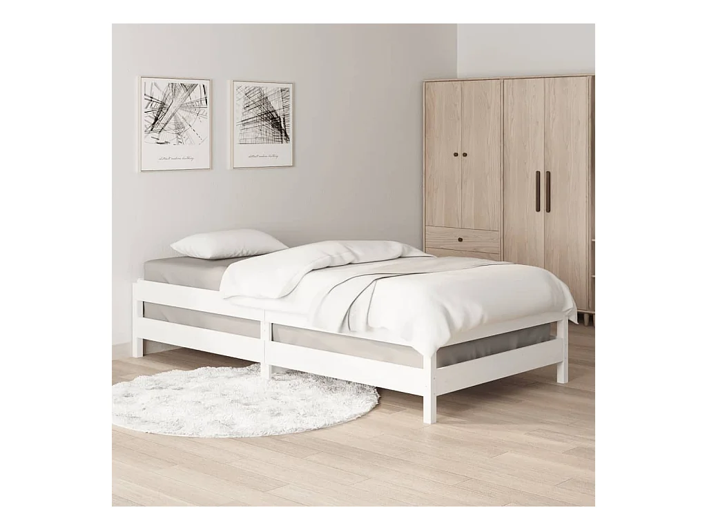 Bed stapelbaar 90x190 cm massief grenenhout wit