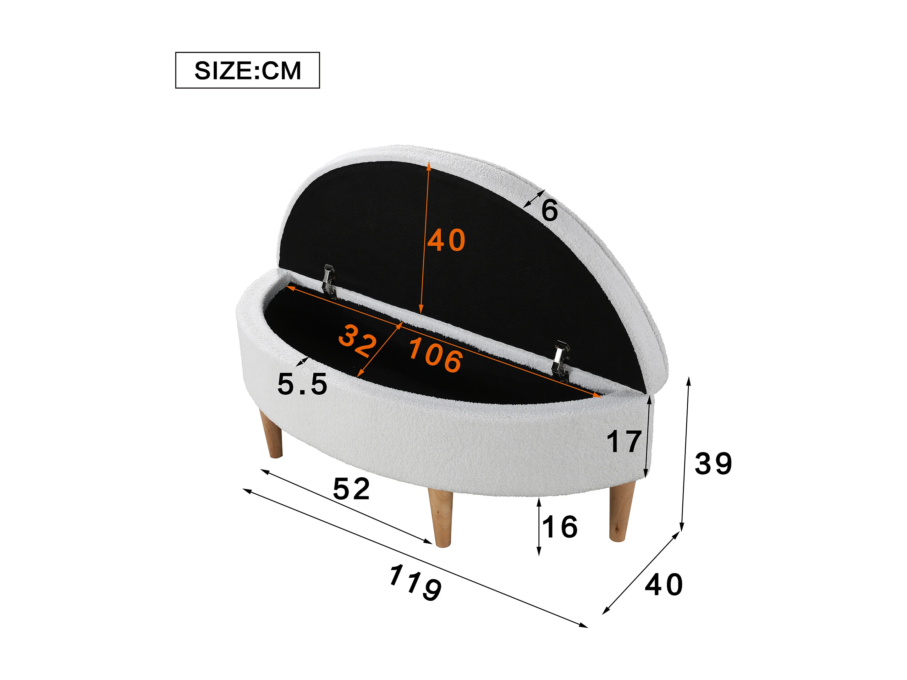 Bedbank 119x40x39 cm met opbergruimte. Gemaakt van wit MDF. Voor woon- en slaapkamer.