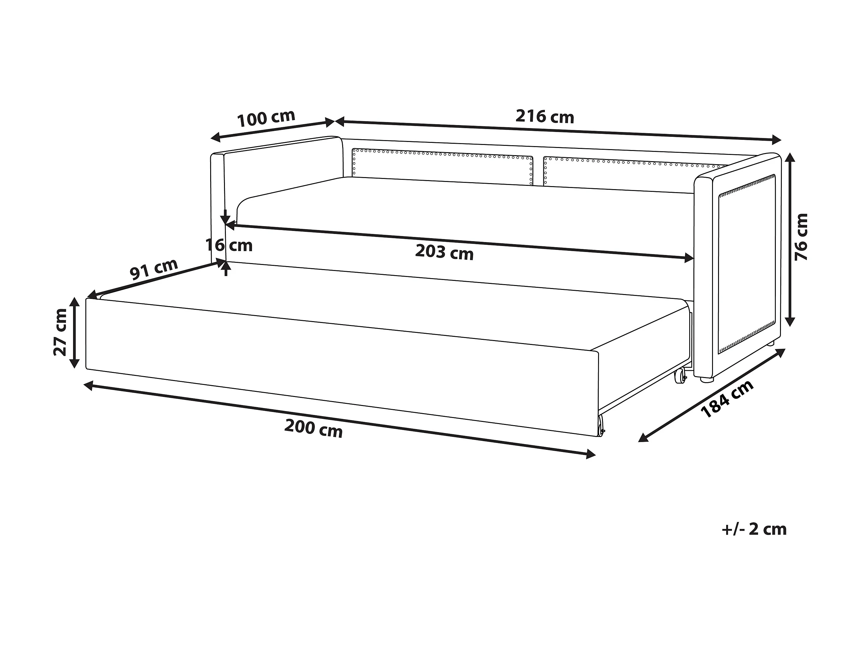 Onderschuifbed Corduroy MIMIZAN 90 x 200 cm Pastelroze