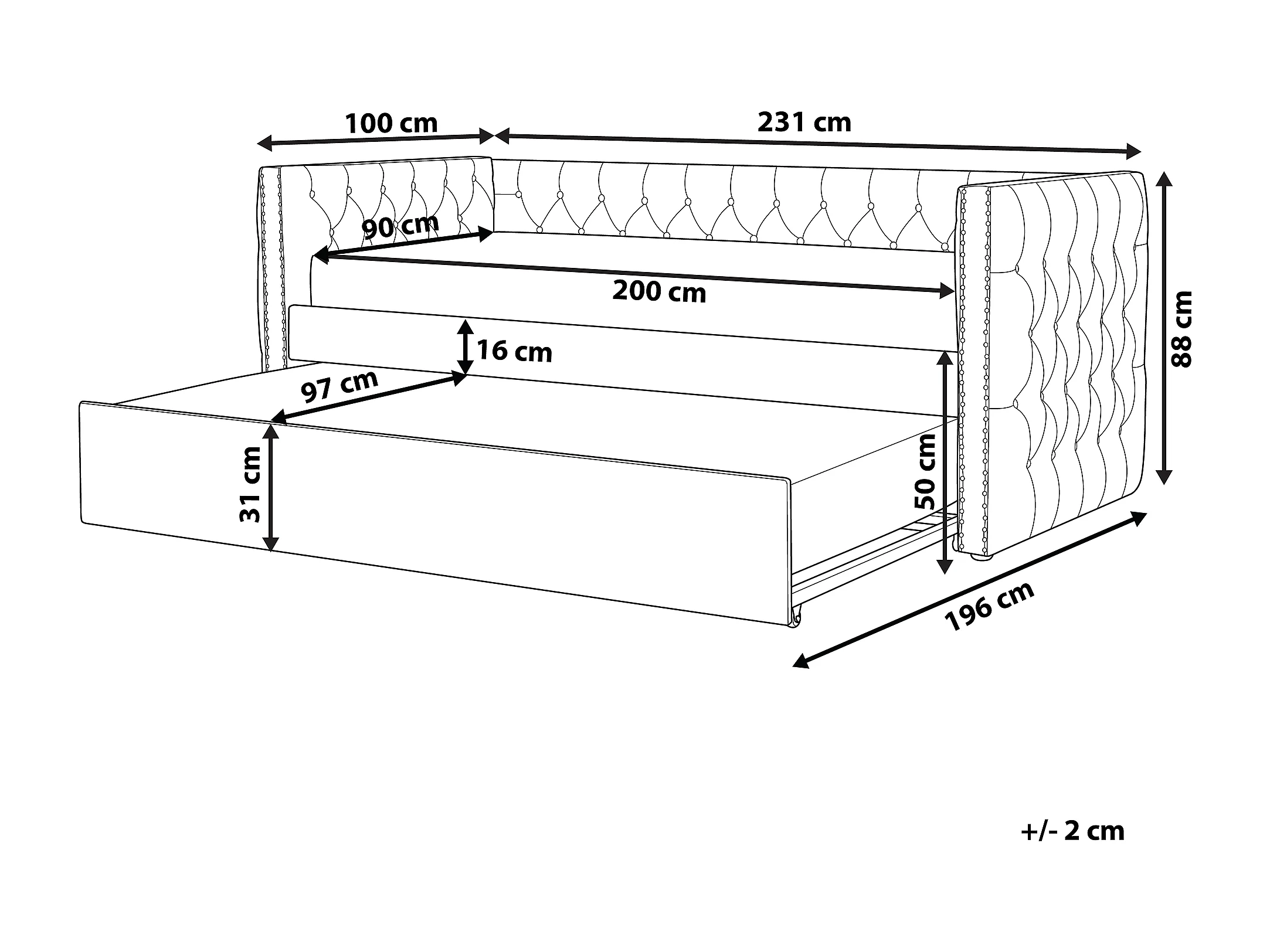 Onderschuifbed Fluweel GASSIN 90 x 200 cm Smaragdgroen