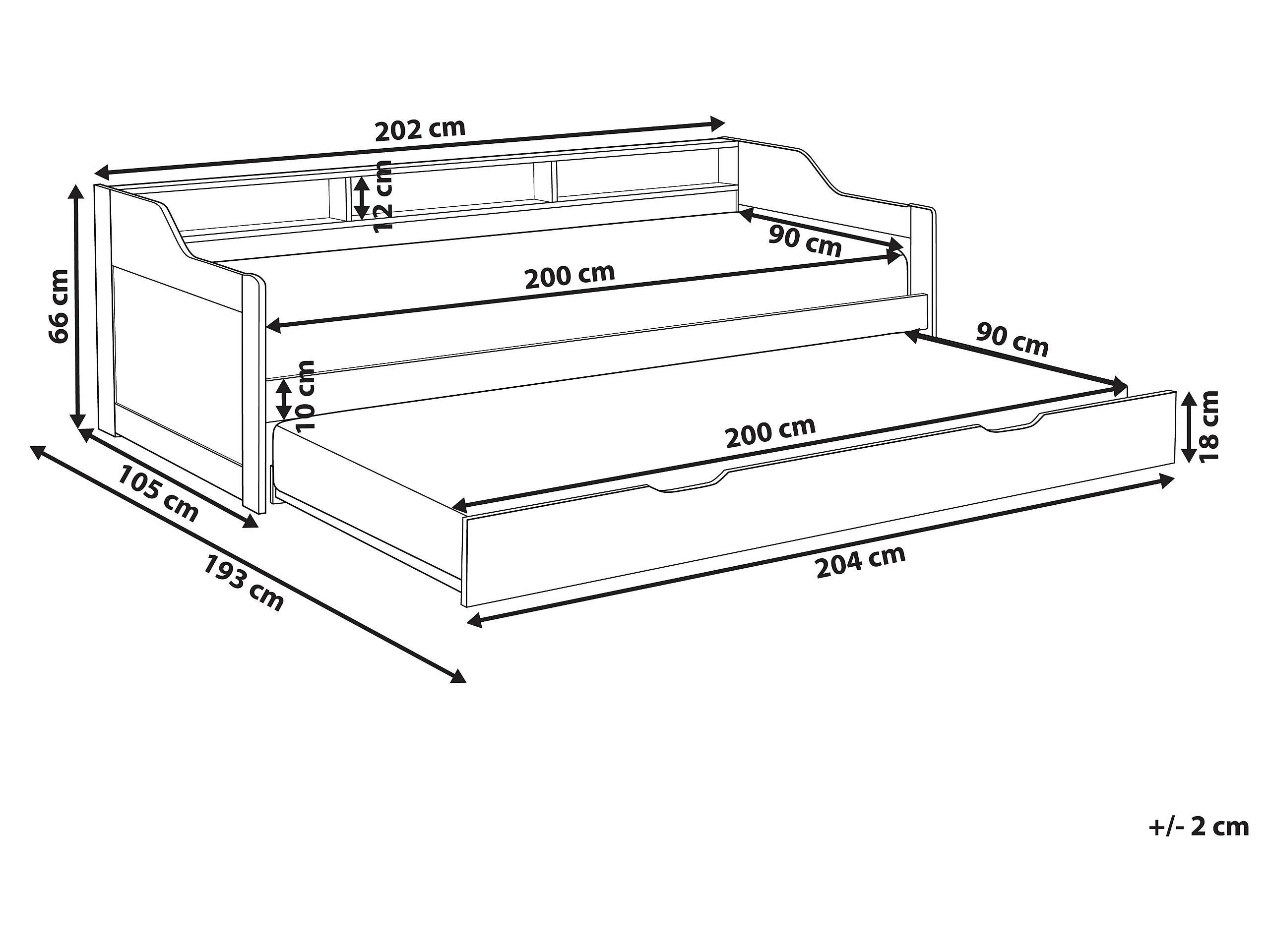 Onderschuifbed Dennenhout EDERN 90 x 200 cm Wit