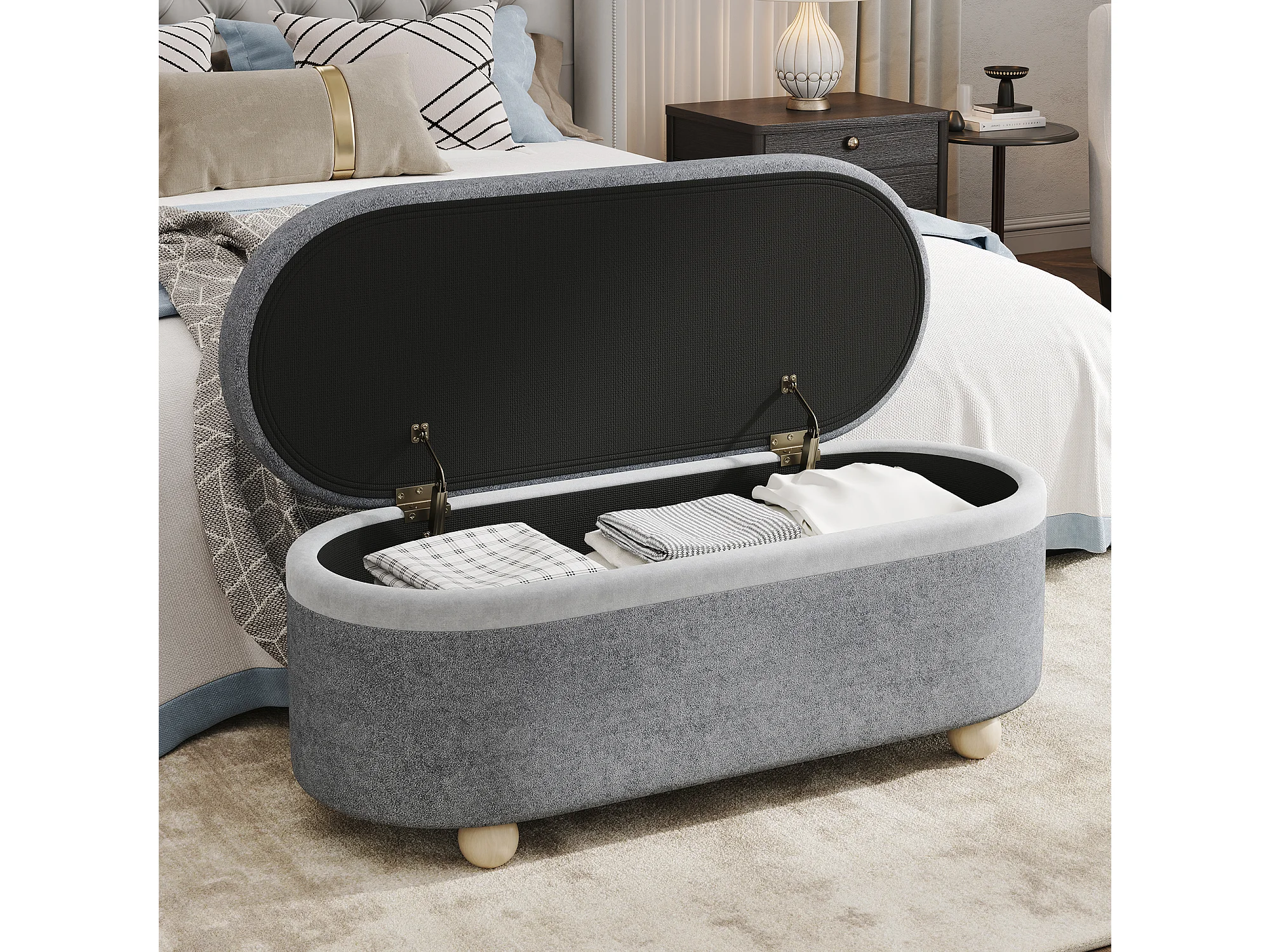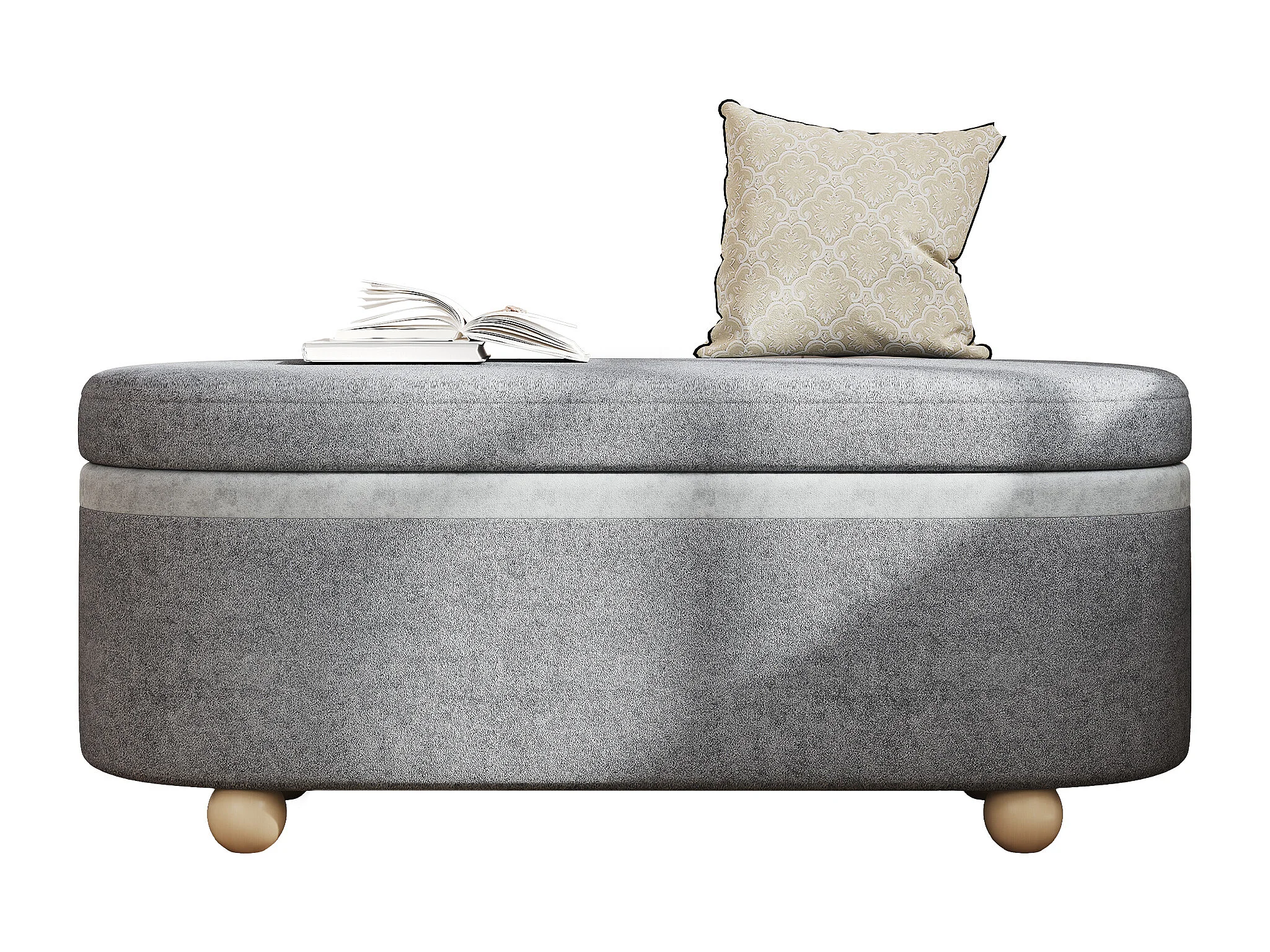 Bedbank met opbergruimte in grijze stof, 110x41x47 cm