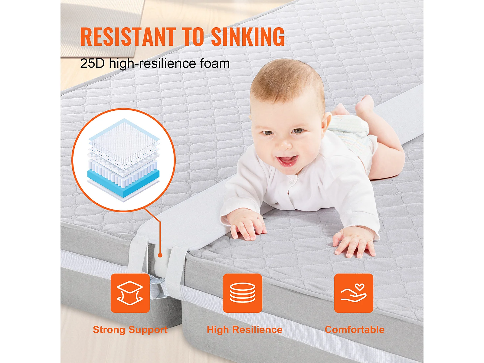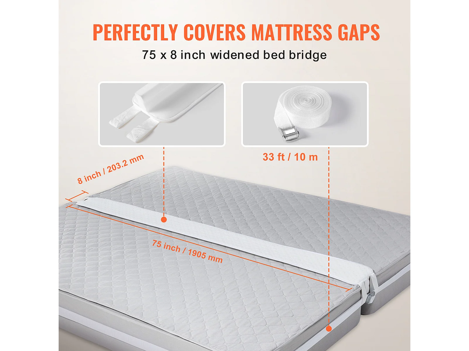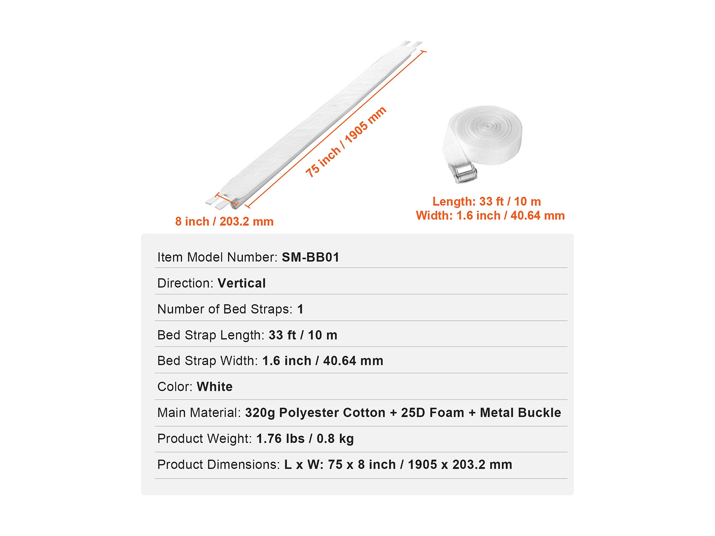 Bedbrug 190,5 x 20,32 cm SucceBuy, met Sterke Metaalring en Opbergzak, Vormgeheugenschuim 25D