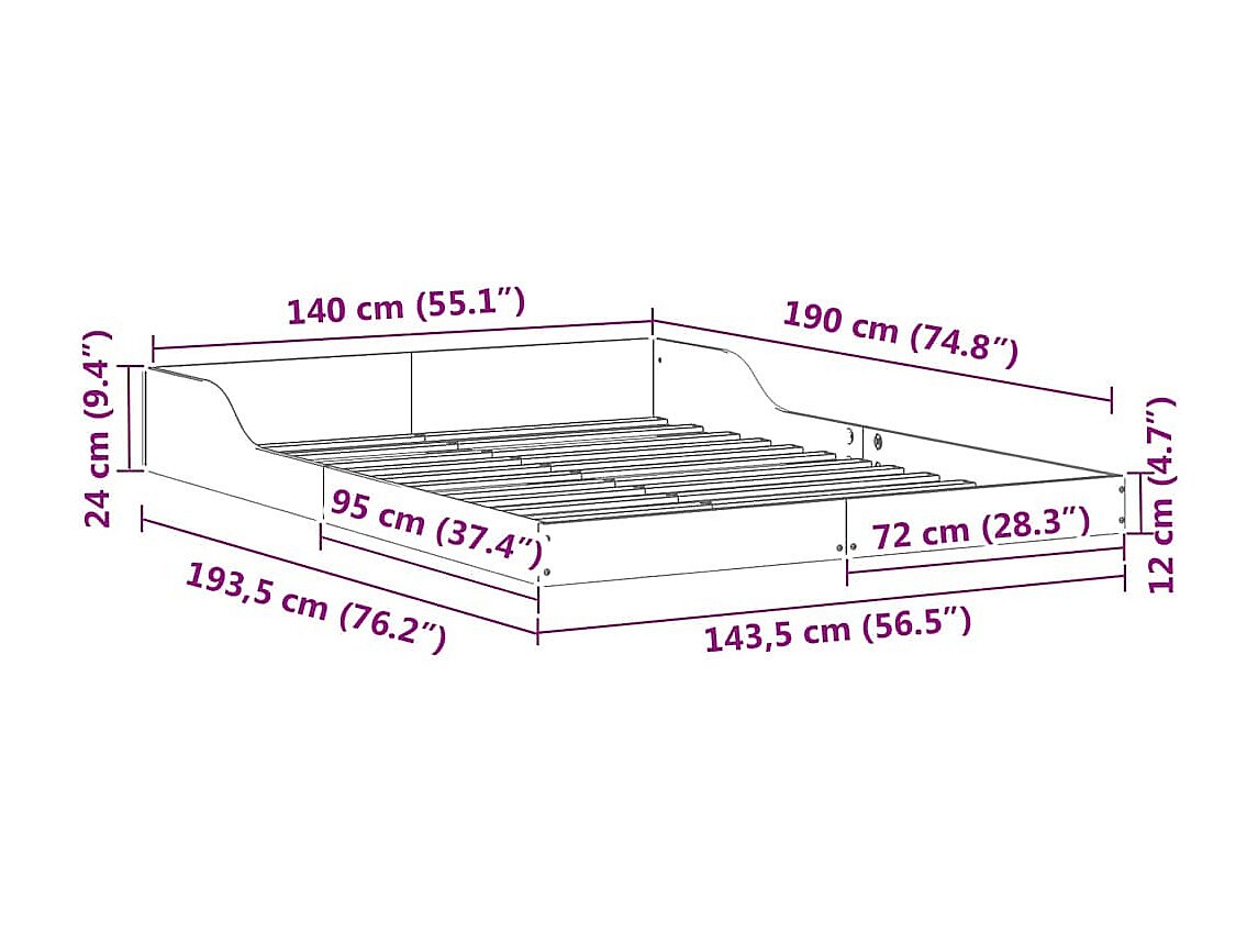 Bedframe Bruin 140 x 190 cm Massief grenenhout