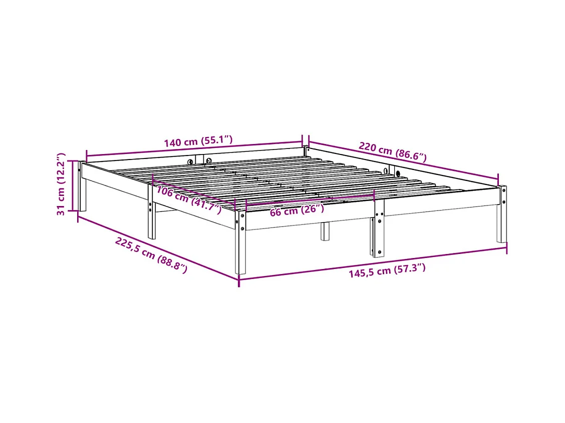 Bedframe extra lang zonder matras massief hout wit 140x220 cm