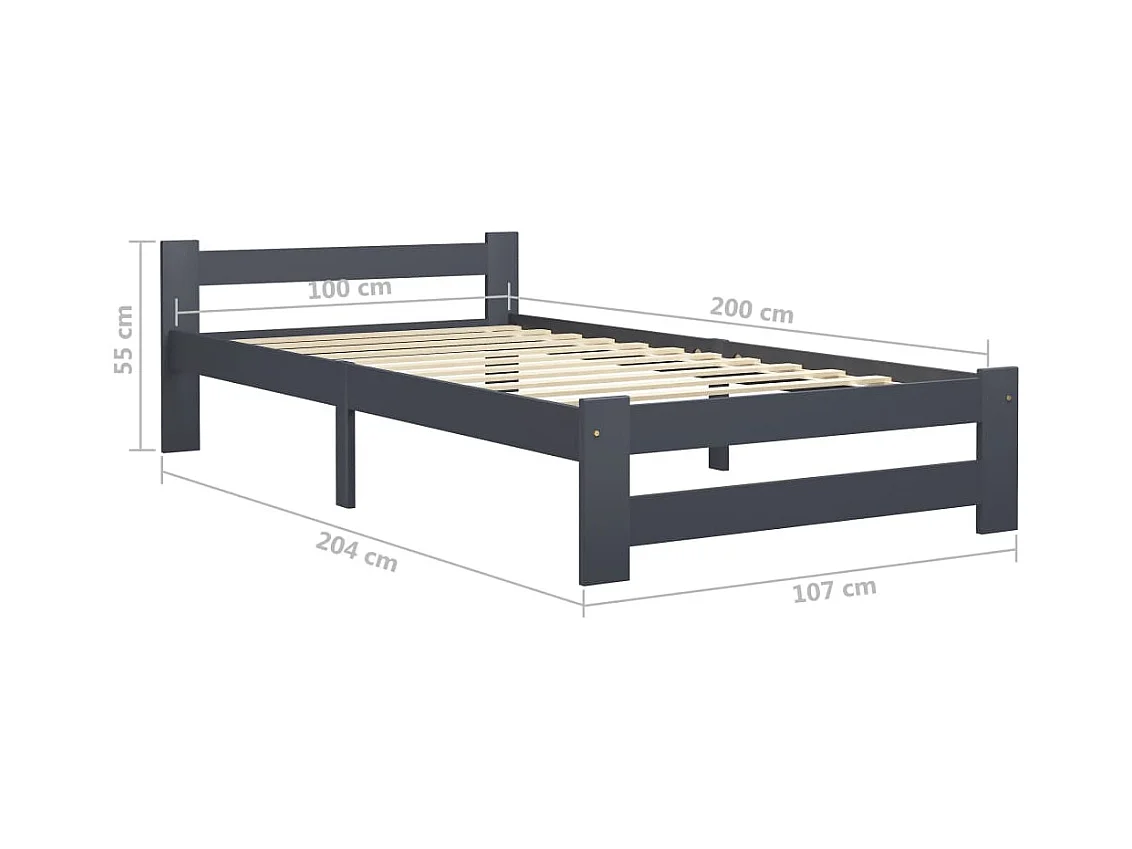 Bedframe massief grenenhout donkergrijs 100x200 cm NL33455