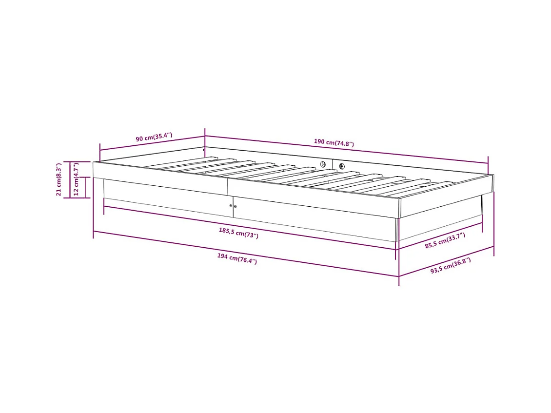 Bedframe met hoofdeinde Bruin 90 x 190 cm Massief grenenhout