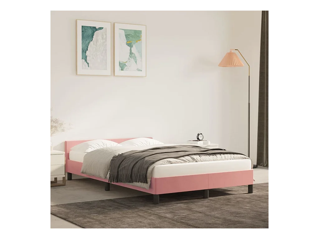 Bedframe met hoofdbord fluweel roze 120x190 cm BE909451