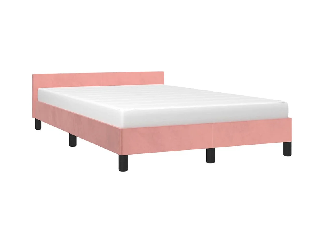 Bedframe met hoofdbord fluweel roze 120x190 cm BE910209