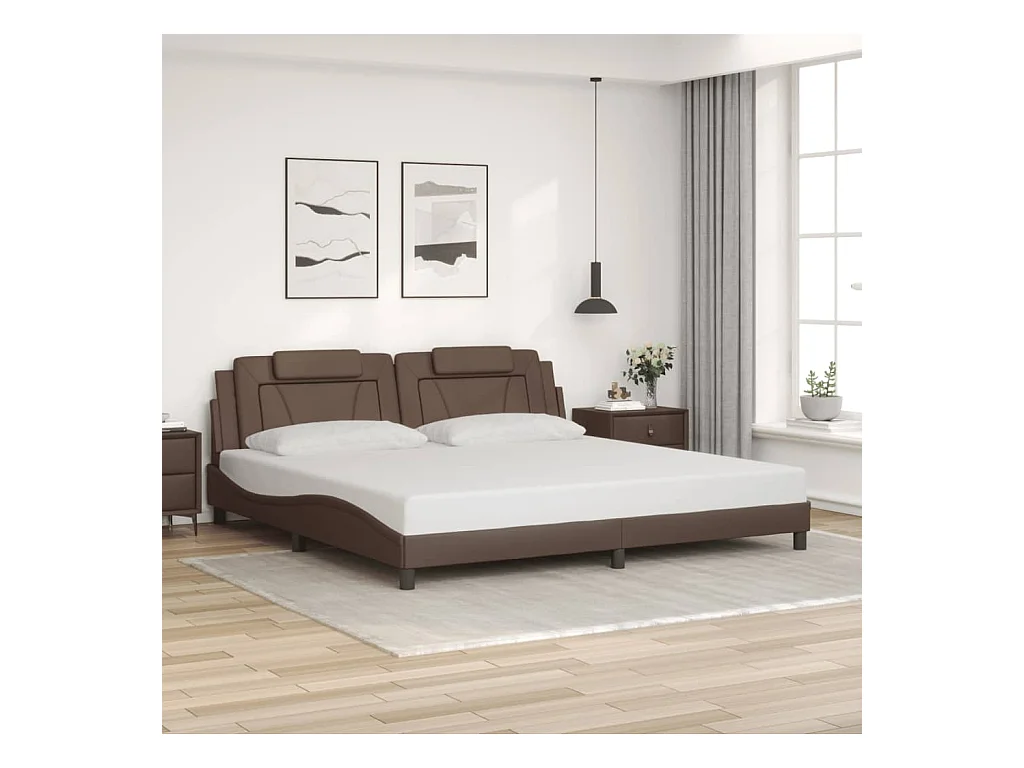 Bedframe met hoofdbord kunstleer bruin 180x200 cm BE598533