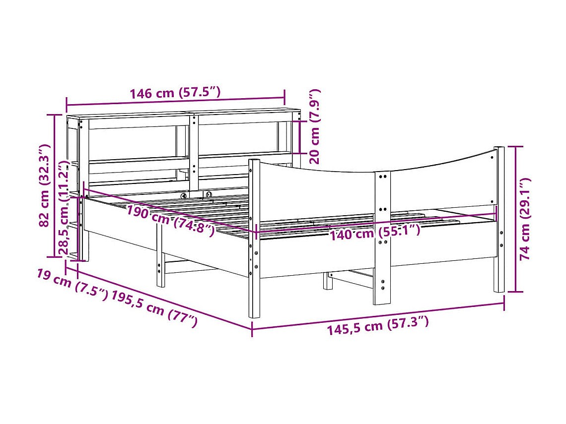 Bed met boekenkast zonder matras massief grenenhout 140x190 cm