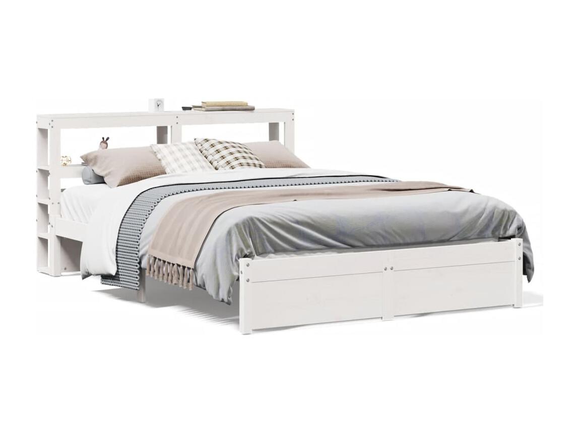 Bed met boekenkast zonder matras grenenhout wit 150x200 cm