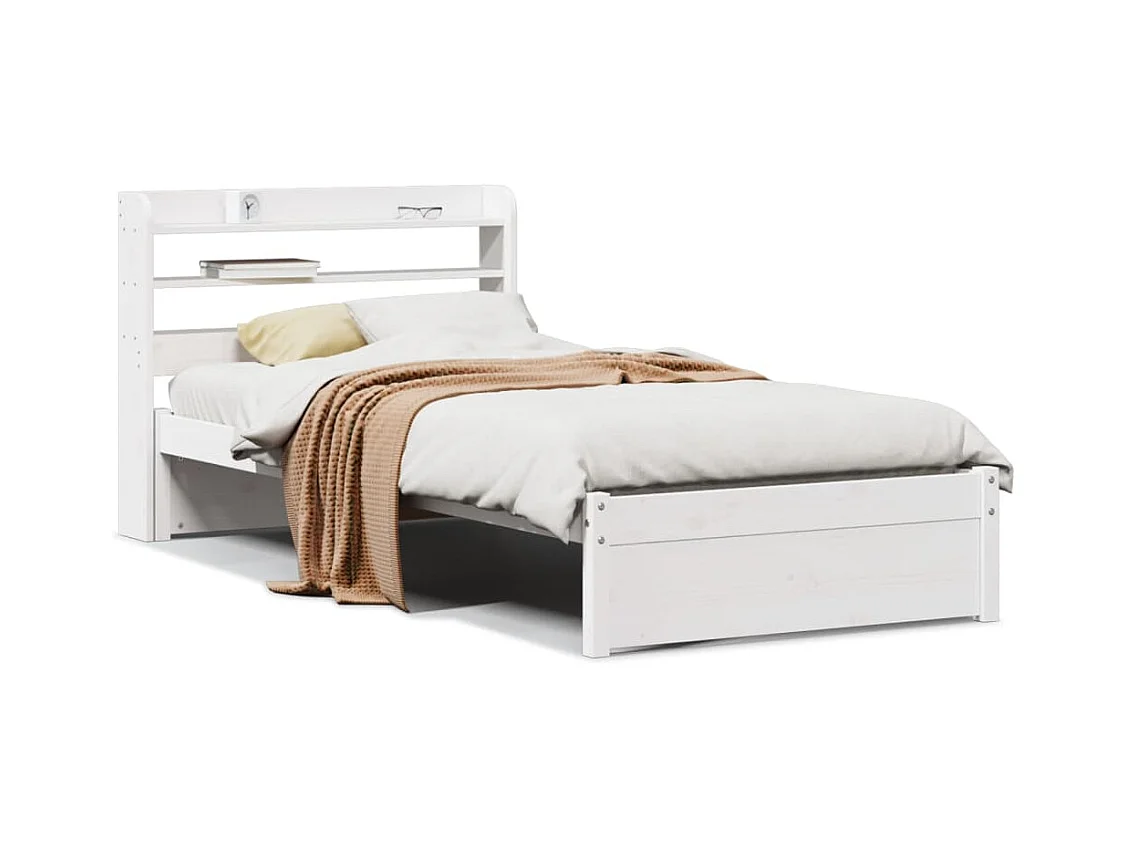 Bed met boekenkast zonder matras grenenhout wit 75x190 cm