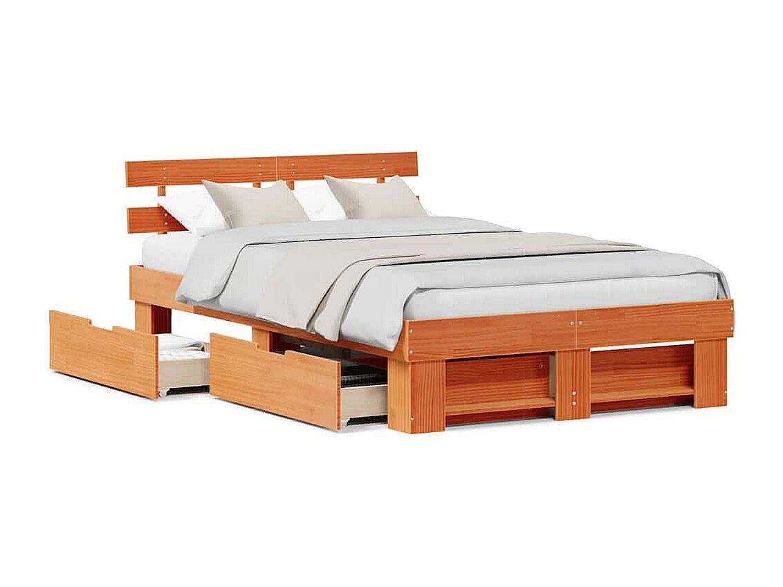 Bedframe met hoofdbord massief grenenhout wasbruin 135x190 cm