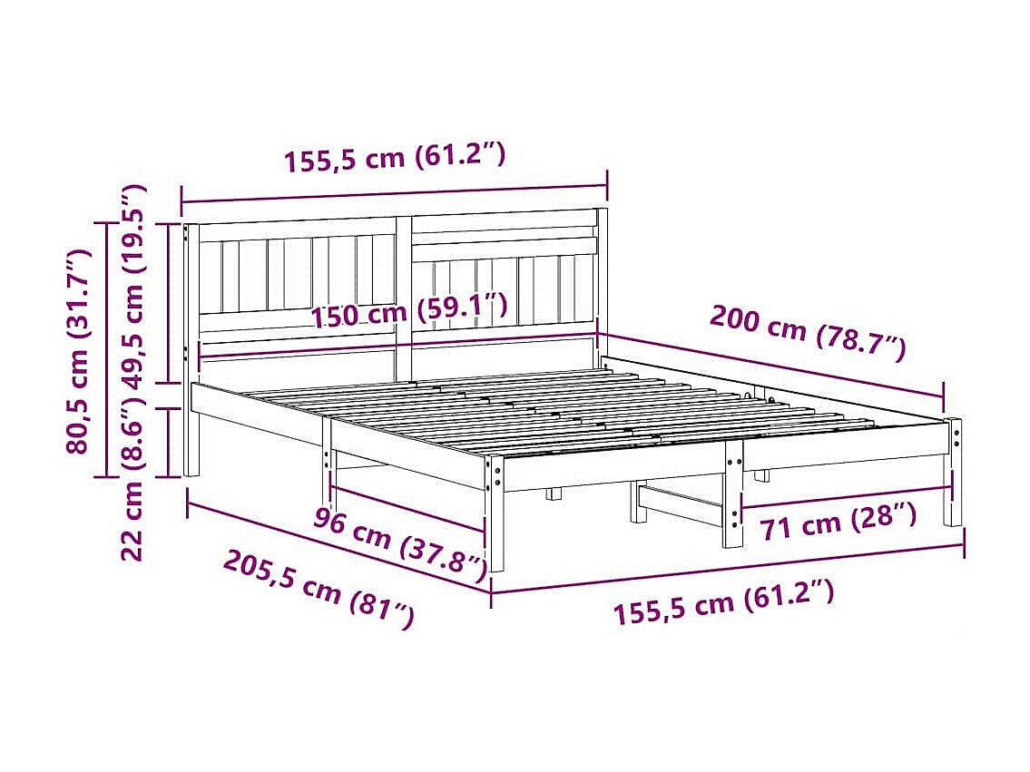 Bedframe Bruin 150 x 200 cm Massief grenenhout