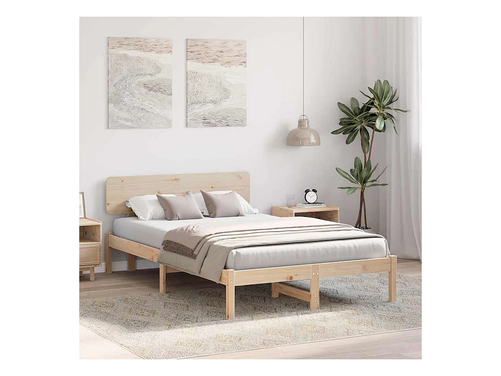 Bedframe met hoofdbord massief grenenhout 120x190 cm BE252583