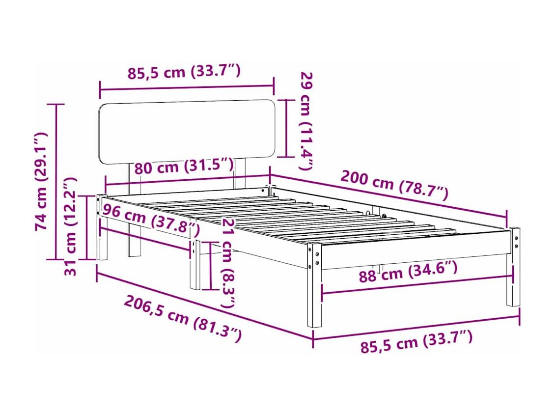Bedframe met hoofdeinde Wasbruin 80 x 200 cm
