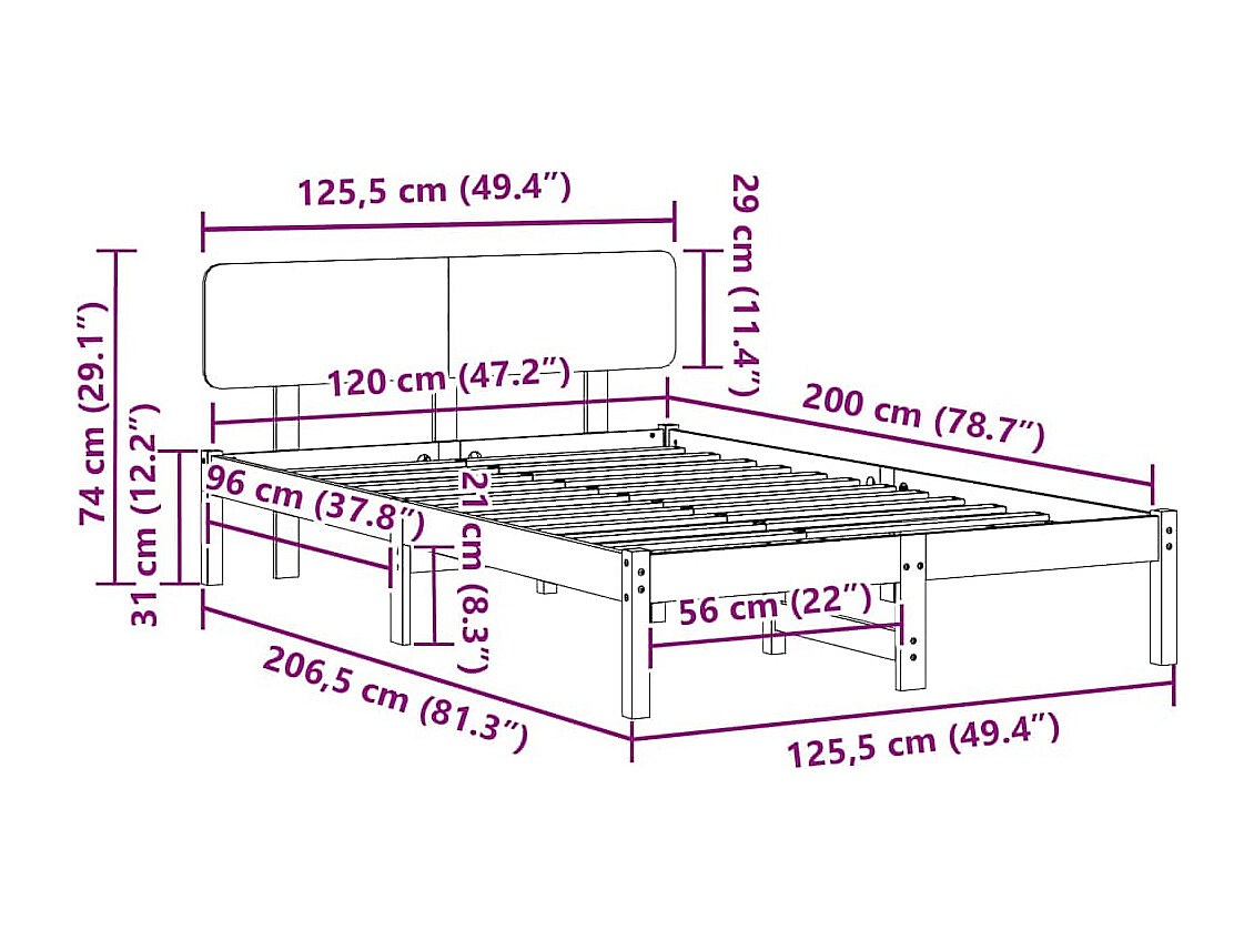 Bedframe met hoofdbord massief grenenhout wit 120x200 cm NL33487
