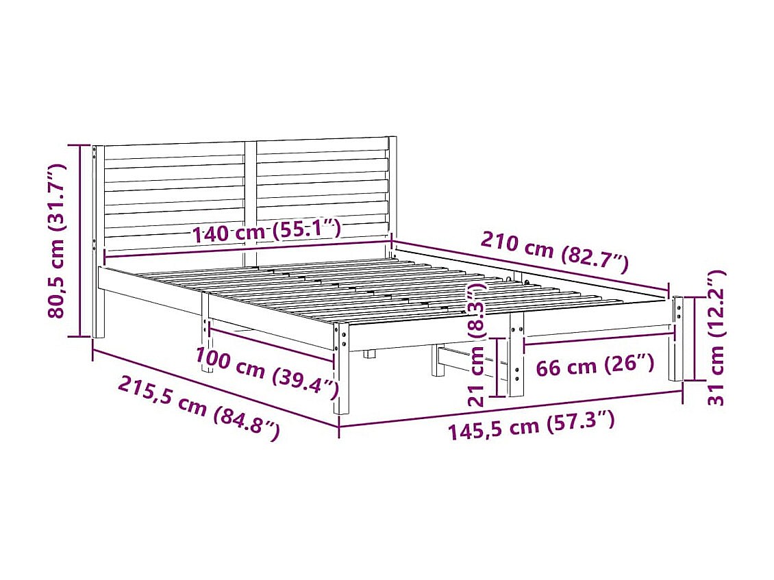 Bedframe met hoofdeinde Wit 140 x 210 cm Massief grenenhout
