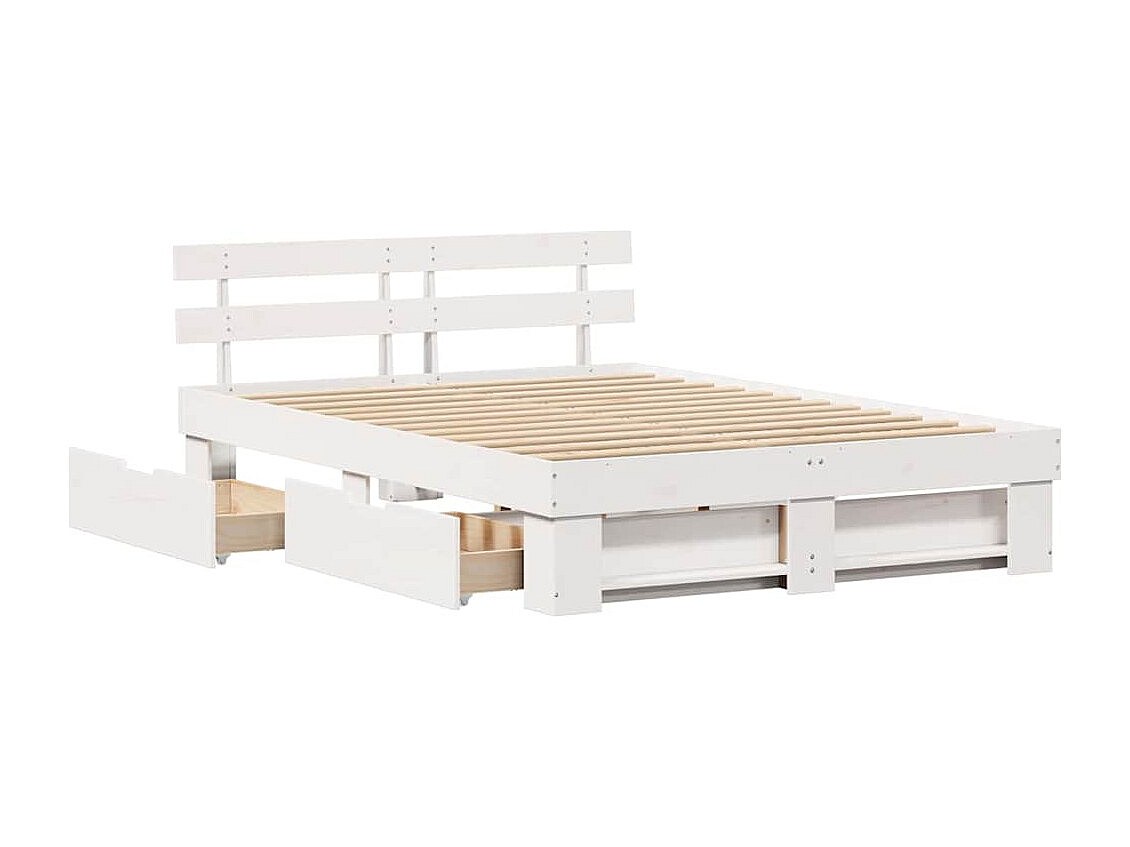 Tweepersoonsbed 160x200cm, met 4 lades, lattenbodem en hoofdbord met diverse opbergruimtes, wit