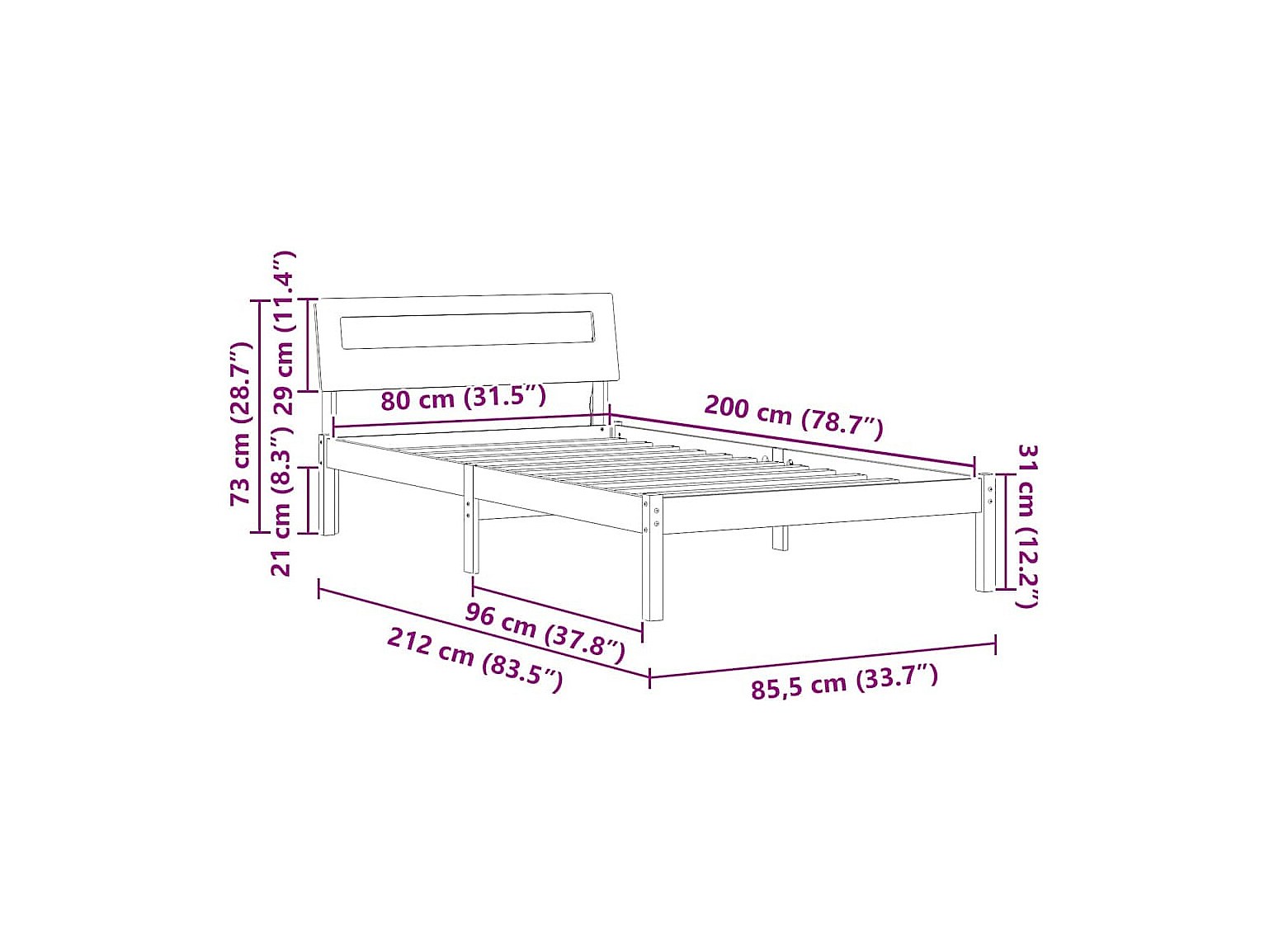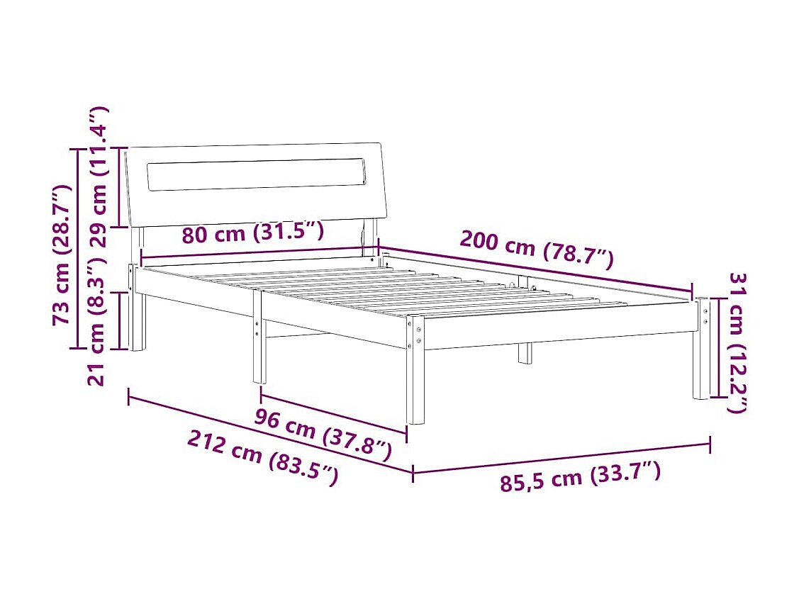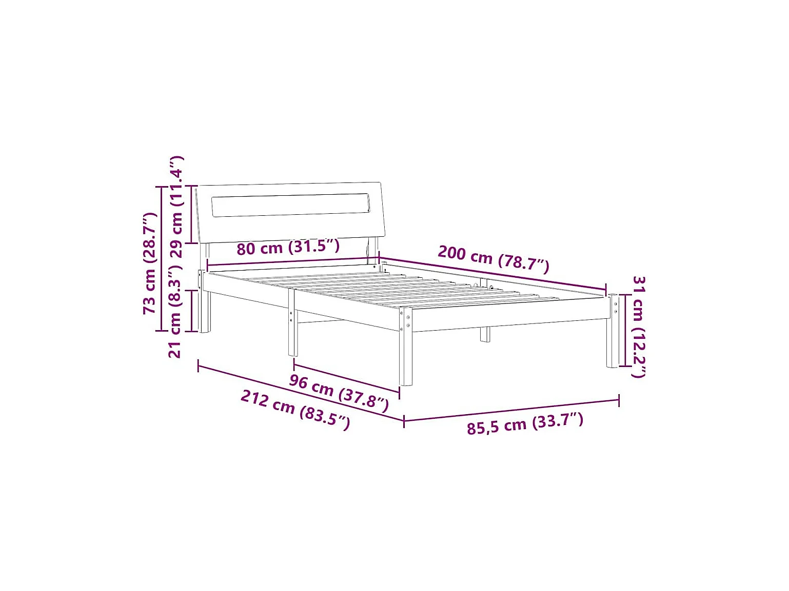 Bedframe met hoofdeinde Wit 80 x 200 cm Massief grenenhout