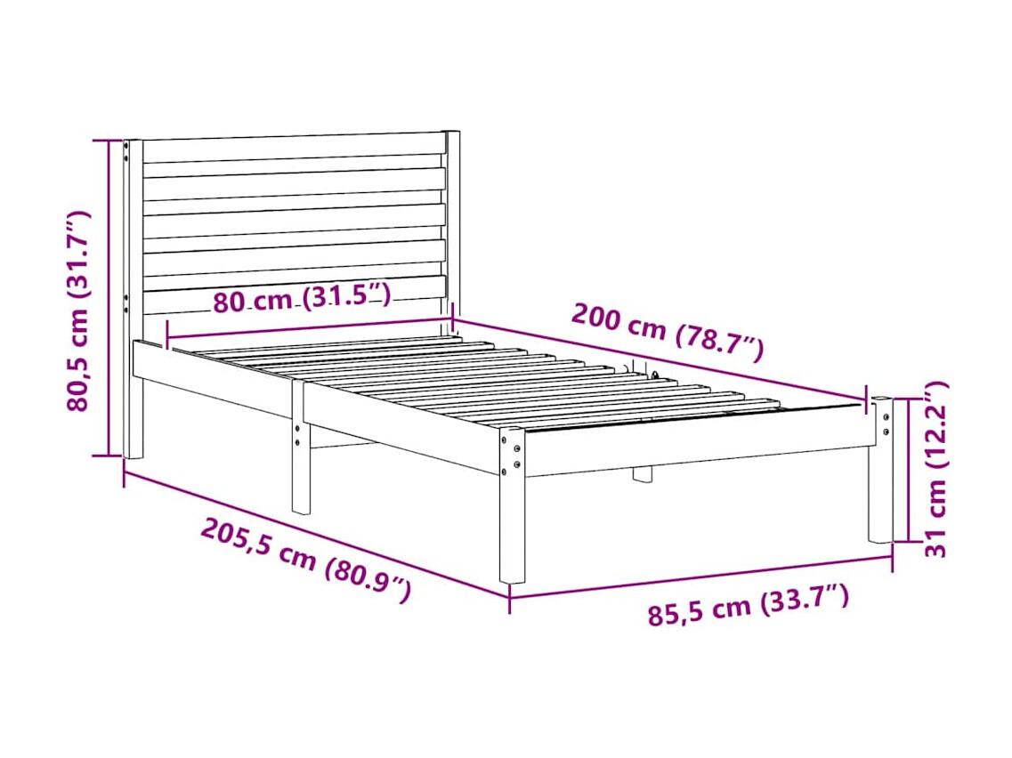 Bedframe met hoofdeinde Wit 80 x 200 cm Massief grenenhout