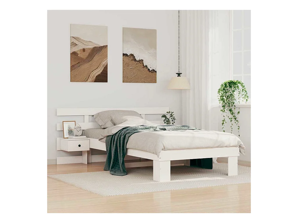 Bedframe met hoofdeinde Wit 90 x 190 cm Massief grenenhout