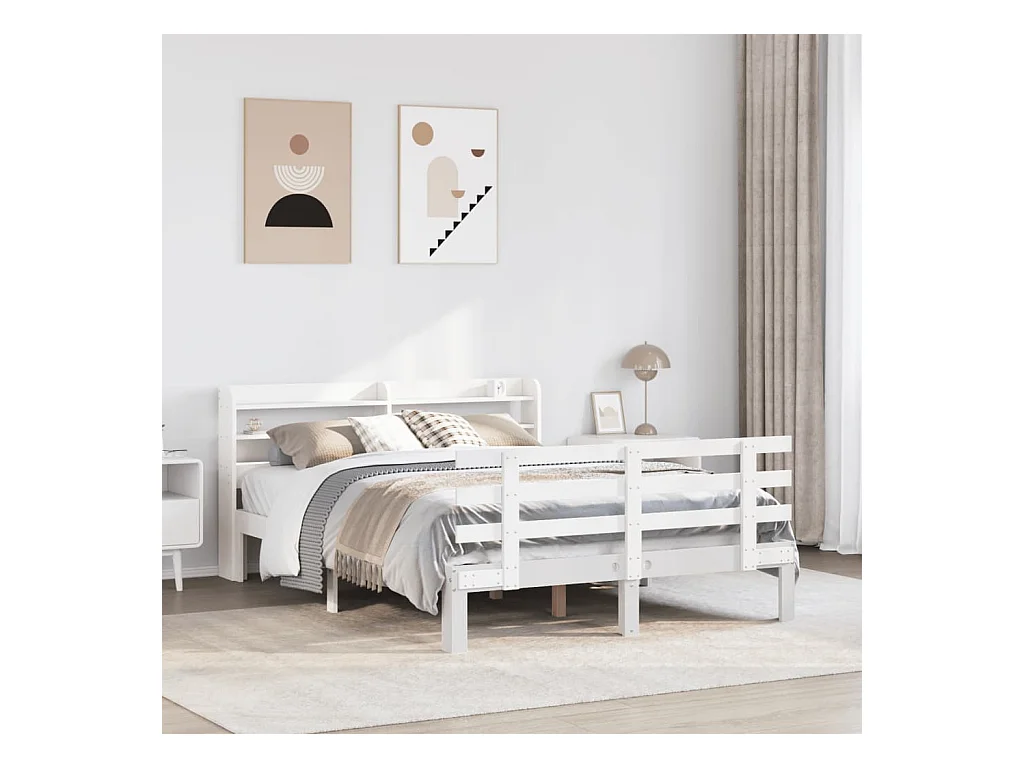 Bed met boekenkast zonder matras grenenhout wit 120x200 cm