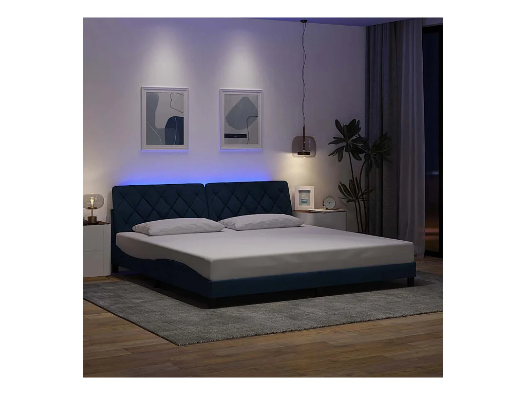 Bedframe met LED zonder matras 200x200 cm stof blauw