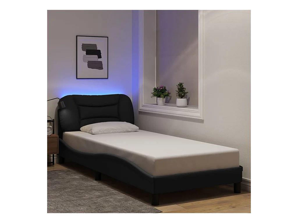 Bedframe met LED zonder matras zwart 90x190 cm stof