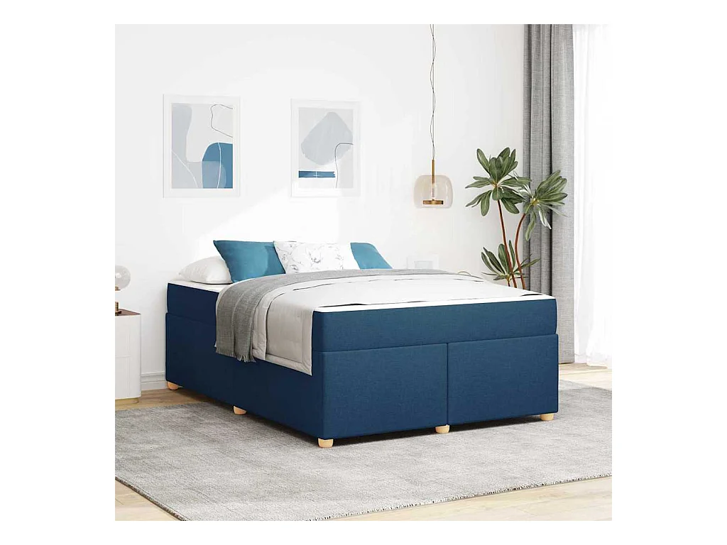 Boxspring met matras stof blauw 140x200 cm