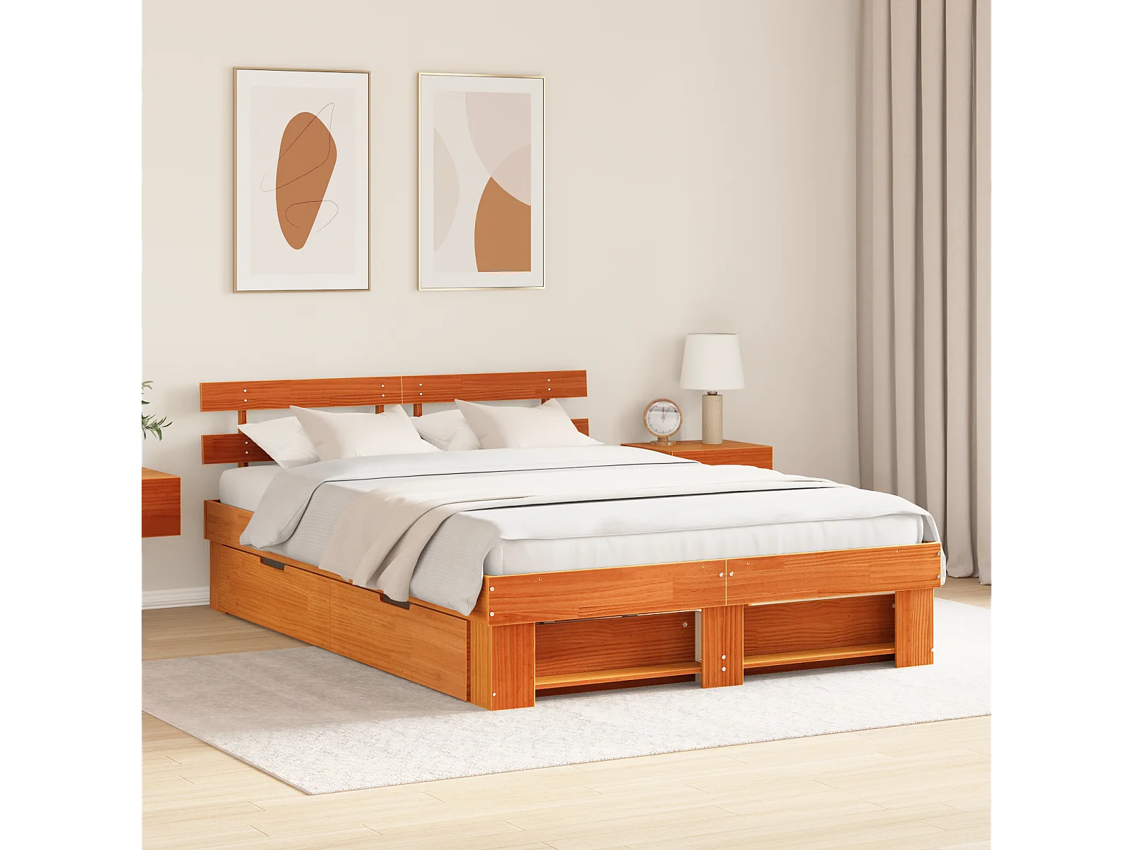 Bedframe | Tweepersoonsbed met lade Wasbruin 160x200 cm Massief grenenhout