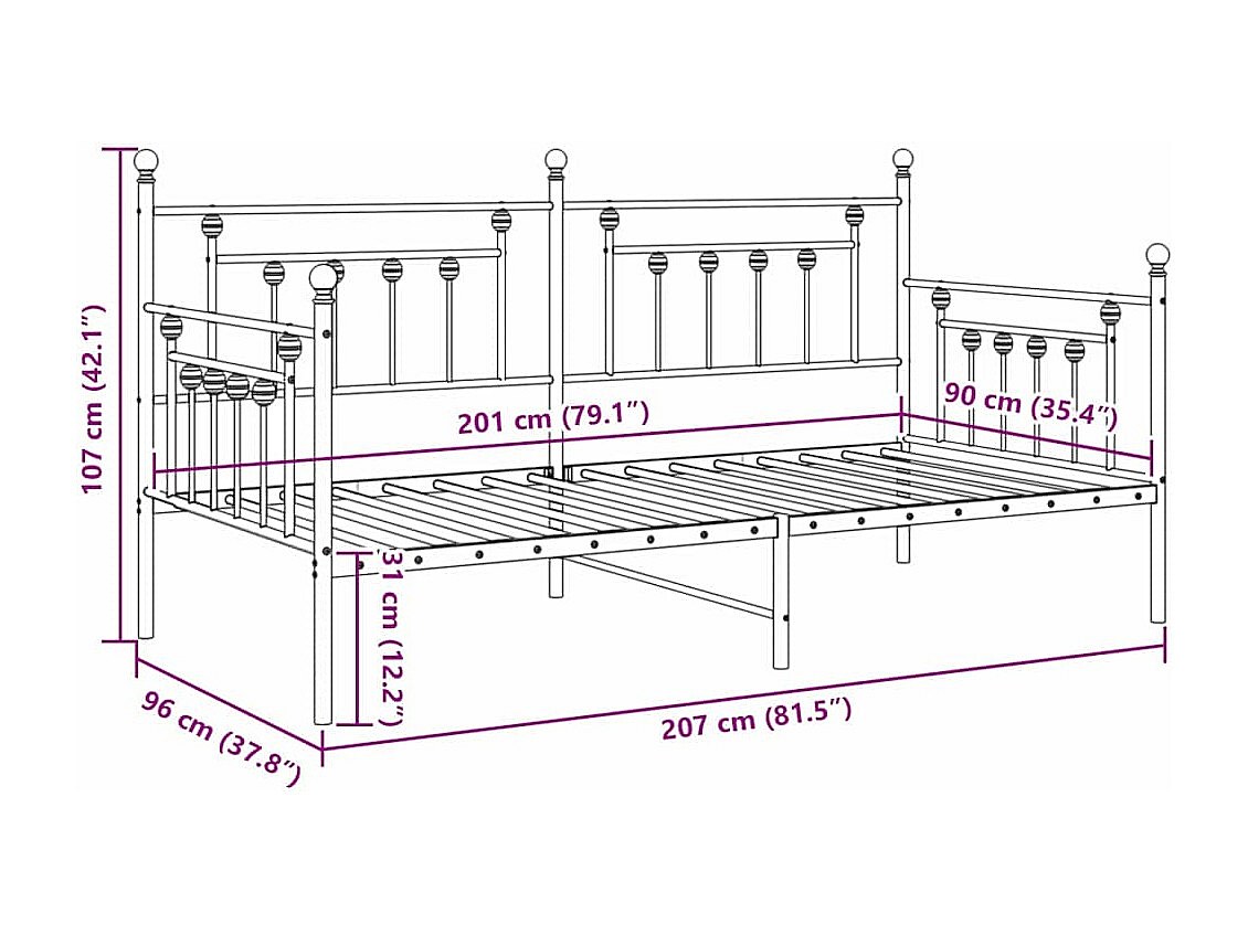 Bedframe voor een daybed met hoofdeinde Zwart 90 x 200 cm Staal